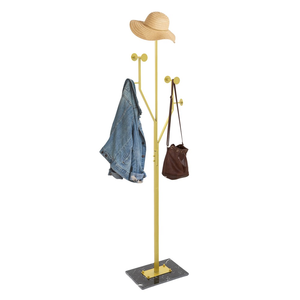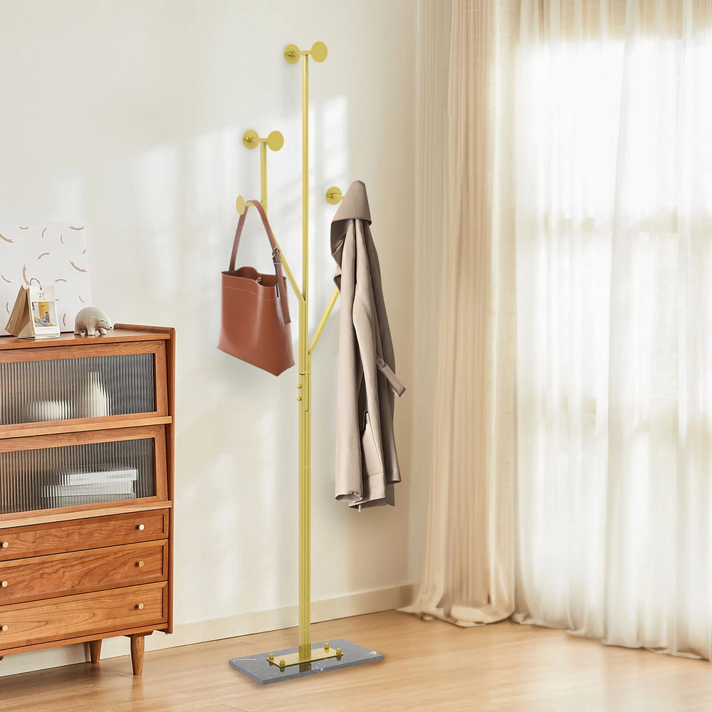 Specification Color: Gold+Black Style: Modern Material: Iron, Marble, Rubber Process: Polishing, High-temperature Baking Paint Assembly Required: Yes Mounting Type: Free Standing Load Capacity: 15-20kg/33.07-44.09 lbs Product Size: 38*26*175cm/14.96*10.24*68.9in Package Size: 100*39*18cm/39.37*15.35*7.09in Gross Weight: 8.34kg/18.39 lbs Net Weight: 7.92kg/17.46 lbs Package Included 1* Coat Rack 6* Foot Pads Other Accessories for Assembly Coat Rack Iron Hat Bag Tree Free Standing Clothes Hanger Holder Hooks Organizer Key Features Premium Materials: It is mainly made of premium iron and marble, and the surface is treated with high-temperature baking paint and polishing technology, which is scratch-resistant, rust-proof, sturdy, not easy to deform, and can withstand the test of time. High Load-bearing Capacity: The premium material, heavy-duty marble base, and stable structure allow it to hold up to 33.07-44.09 lbs , meeting the daily clothing hanging needs. Saving Space: It can save space because of the full utilization of vertical space and the small footprint( 14.96*10.24 in ) of the base. Storage Assistant: It adopts a tree branch-shaped design each branch has several circular hooks, providing multiple branches to give you enough space to hang clothes, bags, hats, scarves, etc., meeting your daily storage needs and making your home more tidy and beautiful. Aesthetic Appearance: The smooth lines, elegant gold, and natural marble patterns make it well integrated into various styles of home decor, enhancing the overall texture and style of the home. Simple Installation : You can easily install it without too much effort and time because of its simple structure and complete accessories . Easy to Clean: It has a smooth surface and an open structure, so you only need to wipe the dust or residue with a towel. Ideal Gift: With good performance and a modern appearance, it can be used as an ideal housewarming gift for parents, friends, and lovers so that they can also have a good clothing organization assistant. Good Customer Service: We aim to provide quality products and services. If you have problems, please feel free to contact us. We will reply and solve the problem for you as soon as possible. Details Rounded Edge: The edges of the product are designed with rounded corners , better protecting your clothes and hands. Rubber Pads: They can effectively enhance the stability of the product while protecting the floor from scratches. Circular Hook: It can prevent clothes hangers or bags from slipping, prevent clothes from getting dirty, and improve the stability of hanging. Application It is used in bedrooms, living rooms, hallways, foyers, offices, and small apartments to hang items such as hats, scarves, bags, and clothes. Specification Color: Gold+Black Style: Modern Material: Iron, Marble, Rubber Process: Polishing, High-temperature Baking Paint Assembly Required: Yes Mounting Type: Free Standing Load Capacity: 15-20kg/33.07-44.09 lbs Product Size: 38*26*175cm/14.96*10.24*68.9in Package Size: 100*39*18cm/39.37*15.35*7.09in Gross Weight: 8.34kg/18.39 lbs Net Weight: 7.92kg/17.46 lbs Package Included 1* Coat Rack 6* Foot Pads Other Accessories for Assembly Notes Please note that items such as suits and bags are not included in this product. Please allow the slight color difference caused by the shooting light and 1-3 cm error due to manual measurement, and make sure you do not mind before ordering. Payment Delivery details Terms of sales About us Contact us Payment We accept ebay payment 。 Fees such as import duties, taxes are not included in the item price or shipping costs. These charges are the buyer's responsibility. Delivery details Shipping: 2-9 working days to: USA Terms of sales We maintain high standards of excellence and strive for hundred percent customer satisfaction. Feedback is very important to us. We hope that you contact us immediately before you give neutral or negative feedback, so that we can address your concerns. It is impossible to address issues if we do not know about them! About us Your satis faction is our ultimate goal. We work hard to earn your trust and future business. Our certified technicians have tested each item before shipping. The unit comes with 1 year limited warranty on all manufacturing defects. a) If you receive a defective item, you may return it or ask for a discount. Please contact us within 14 days after you receive the package. b) What you returned must be intact and in its original packaging as re? u. Customer is responsible for shipping costs of the returned item. c) We will cover the cost of shipping back t with the shipping rate indicated in the registration page. We will send you a new unit or refund the full payment you paid. Thank you. Contact us Business Hour Business Hour: Monday To Friday: 8:30 AM to 5:00 PM (Beijing China time) Due to time zones, our reply to your questions may not be immediately. But within above working time, we will reply your email within 24 hours. If it's non-workdays, please kindly be patient and wait till Monday. Please contact us with ebay message. Please feel free to contact us if you have any questions. Monday To Friday: 8:30 AM to 5:00 PM (Beijing China time) Due to time zones, our reply to your questions may not be immediately. But within above working time, we will reply your email within 24 hours. If it's non-workdays, please kindly be patient and wait till Monday. Please contact us with ebay message. Please feel free to contact us if you have any questions. On Aug 12, 2025 at 19:41:55 PDT, seller added the following information: