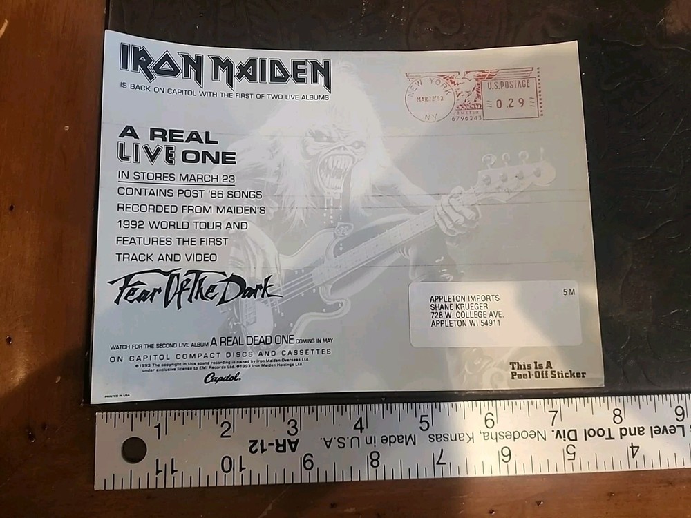 Iron Maiden A Real Live One Album CD Release Promo Sticker New Old Stock Rare Collectible