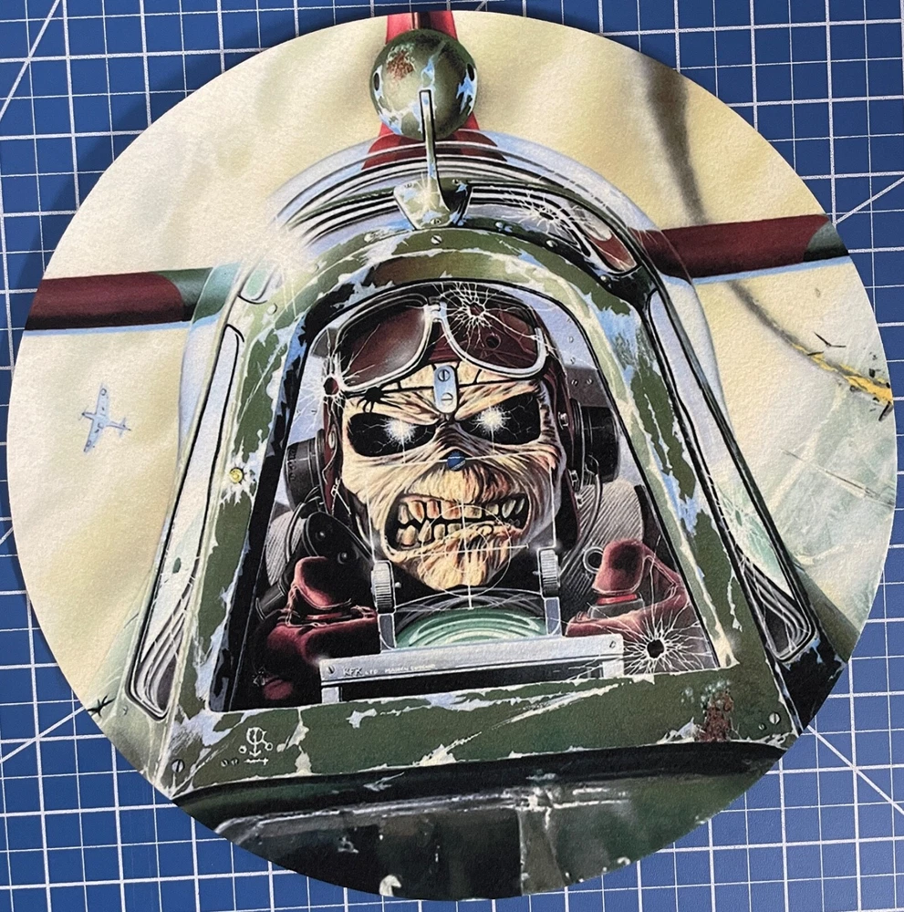 Introducing a Slipmat King slipmat, made of high-quality polyester material with a diameter of 11.75 inches, suitable for any turntable. This Iron Maiden Aces High design slipmat is perfect for heavy metal fans and vinyl record enthusiasts. The slipmat thickness is 1/16 inch and comes in a multicolor design. This slipmat is compatible with all brands and models of turntables, making it a universal accessory for any DJ or music lover. Made in the United States, this slipmat is a must-have for anyone looking to add some personality to their turntable. Get your hands on this unique Iron Maiden Aces High slipmat now. Combined Shipping in the US! Pay shipping on one slipmat, any additional slipmats ship FREE. No limit. Ships Day After Payment is Received (Orders placed on Sat. may ship Mon). This is not a vinyl record. It is a brand new 11 3/4" turntable slipmat. Colors may vary slightly from image. Material Specs Color: White Material: 100% polyester felt Weight: 16oz Felt Dimensions: 11.75″ Diameter Thickness: 1/16" Bottom Surface: Top and Bottom are the same (Non-glazed) Grade: Strong High Quality Feel: Soft Accuracy: Precise 16oz non-glazed slipmats are considered one of the go-to slipmats for turntablists. Perfect for the pro mix/club DJ, turntable audiophile enthusiast, or casual listener.