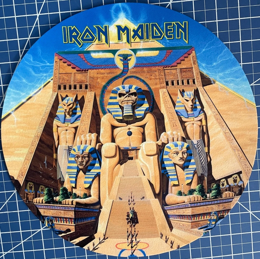 This Iron Maiden Powerslave Turntable Slipmat is a must-have for any DJ or music enthusiast. Made from high-quality polyester material, this slipmat is compatible with any 12" platter and has a diameter of 11.75 inches. The multicolor design features the iconic Iron Maiden logo, making it a great addition to any music collection. Slipmat King has created this slipmat with universal compatibility in mind, ensuring that it will fit any DJ setup. The 1/16 inch thickness provides a comfortable and stable surface for your vinyl records, while the durable construction ensures that it will last for years to come. Made in the United States, this slipmat is a great choice for anyone who wants to add a touch of style and functionality to their DJ setup.