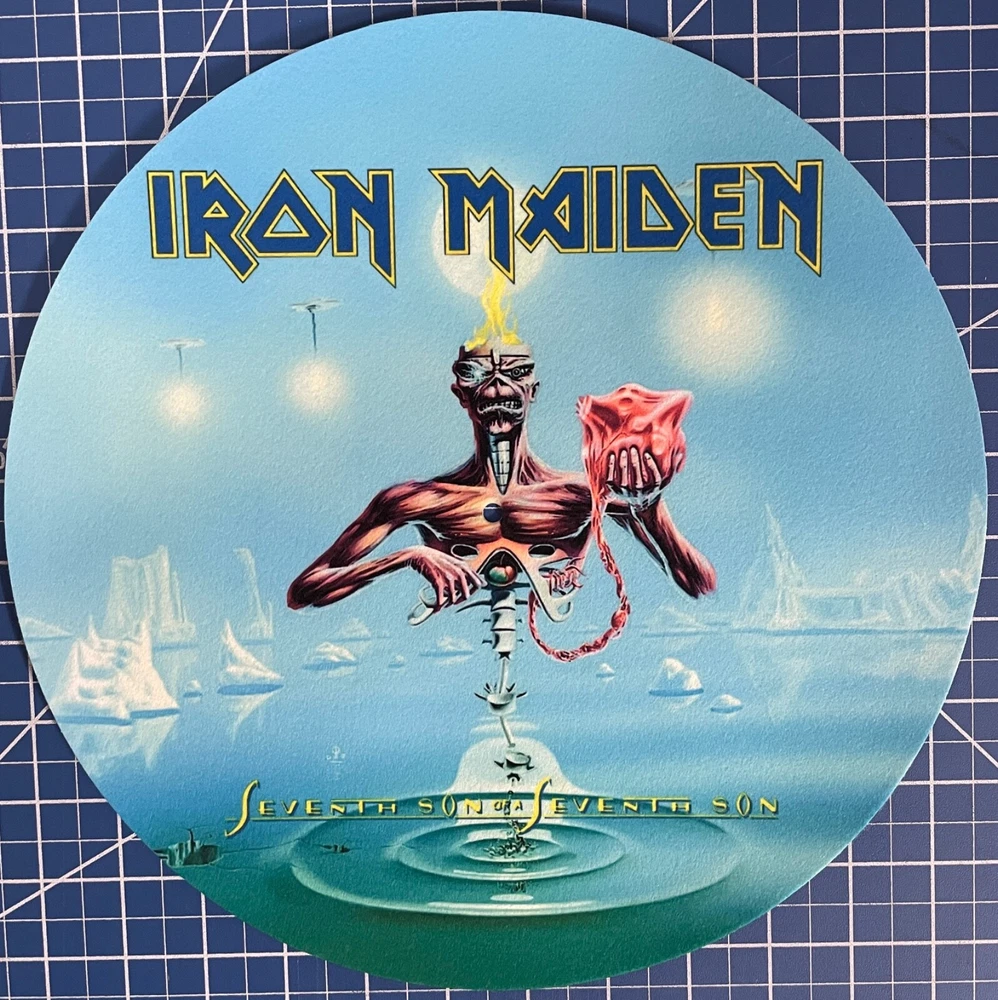 Add some heavy metal flair to your DJ setup with this Slipmat King slipmat featuring artwork from Iron Maiden's Seventh Son Of A Seventh Son album. Made from durable polyester and measuring 11.75 inches in diameter with a thickness of 1/16 inch, this slipmat is compatible with any turntable brand and model. The multicolor design adds a vibrant touch to your vinyl spinning experience. Perfect for any heavy metal fan or collector, this slipmat is a must-have addition to your DJ equipment. Combined Shipping in the US! Pay shipping on one slipmat, any additional slipmats ship FREE. No limit. Ships Day After Payment is Received (Orders placed on Sat. may ship Mon). This is not a vinyl record. It is a brand new 11 3/4" turntable slipmat. Colors may vary slightly from image. Material Specs Color: White Material: 100% polyester felt Weight: 16oz Felt Dimensions: 11.75″ Diameter Thickness: 1/16" Bottom Surface: Top and Bottom are the same (Non-glazed) Grade: Strong High Quality Feel: Soft Accuracy: Precise 16oz non-glazed slipmats are considered one of the go-to slipmats for turntablists. Perfect for the pro mix/club DJ, turntable audiophile enthusiast, or casual listener.