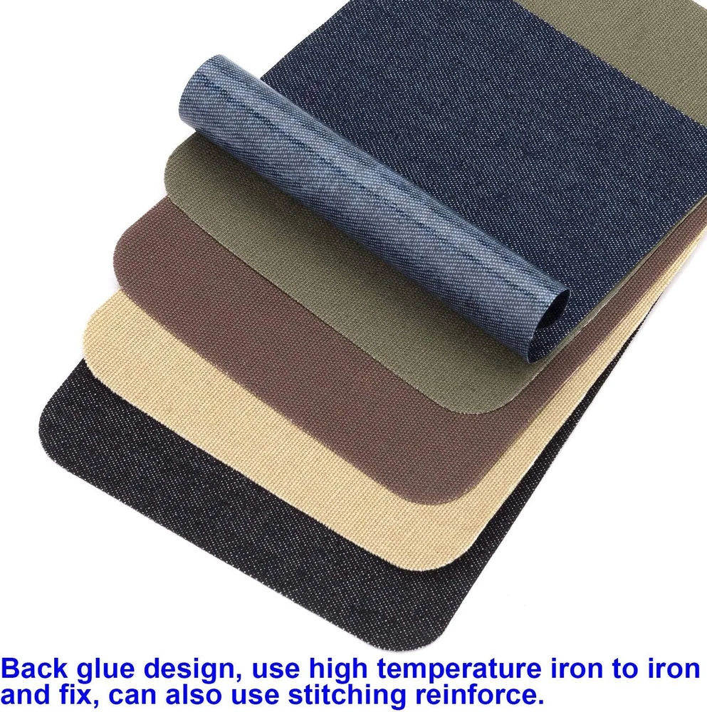 Description Package contains 30 pcs of 4.9 x 3.7 inch iron on patches. Each color 6pcs. 5 different colors denim patches will fit with almost every kind of jeans. Black, coffee, navy, brown and dark green. Iron-On Patches are ideal for mending, reinforcing and decorating many different applications. Easy to applied on fabric: only few minutes will take to repair or decorate your clothes. Perfect for repair and decoration: Prolong the life of your favorite clothes or breathe into the old new life by decorating it Awpeye Iron on patches are ideal for repair and decoration work pants and jeans, uniform shirts, skirts and jackets. Easy to repair your clothes only a few minutes. If you can operate an iron, you can make quality repairs, the iron on repair kit require not messy adhesives and no sewing, patches on to your pants where is ripped and get that backed. While most iron-on denim jean patches on the market are stiff and tend to start peeling off after being applied, our denim patches apply in seconds and last an incredible number of wash and dry cycles. It was washable, allow for machine wash and tumble dry, and they last long. PACKAGE INCLUDES: 6PCS Navy Iron On Patches 6PCS Black Iron On Patches 6PCS Coffee Iron On Patches 6PCS Brown Iron On Patches 6PCS Dark Green Iron On Patches Item Size: 4.9 x 3.7 Inch NOTE: Do not iron with steam. Not recommended for use on nylon, or rayon. The patches are ironed on outside of the jeans not inside.