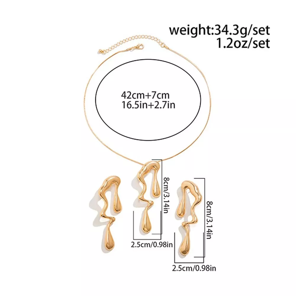 Irregular Gold Statement Earring Necklace Set for Women Chunky Teardrop Dangle Earrings Liquid Metal Thick Geometric Necklaces Dainty Jewelry Gifts Product Details Color: Gold1 Brand: Uarein MPN: Does not apply UPC: Does not apply EAN: Does not apply Product Dimensions : 3 x 1 x 0.1 inches; 0.8 ounces Department : womens Date First Available : April 16, 2024 Brand, Seller, or Collection Name: Uarein Metal: Copper Material: Copper Alloy Gem Type: No Gemstone Item Length: 3 inches Clasp: Lobster Clasp This is a unique shaped jewellery set you can get a delicate earrings and a charming necklace. These melting liquid metal teardrop earrings and necklace look very stylish and glamorous. The irregular geometric shape of the jewelry set allows you to have more ways of matching them and you can choose how to match them according to what you are wearing and your mood.