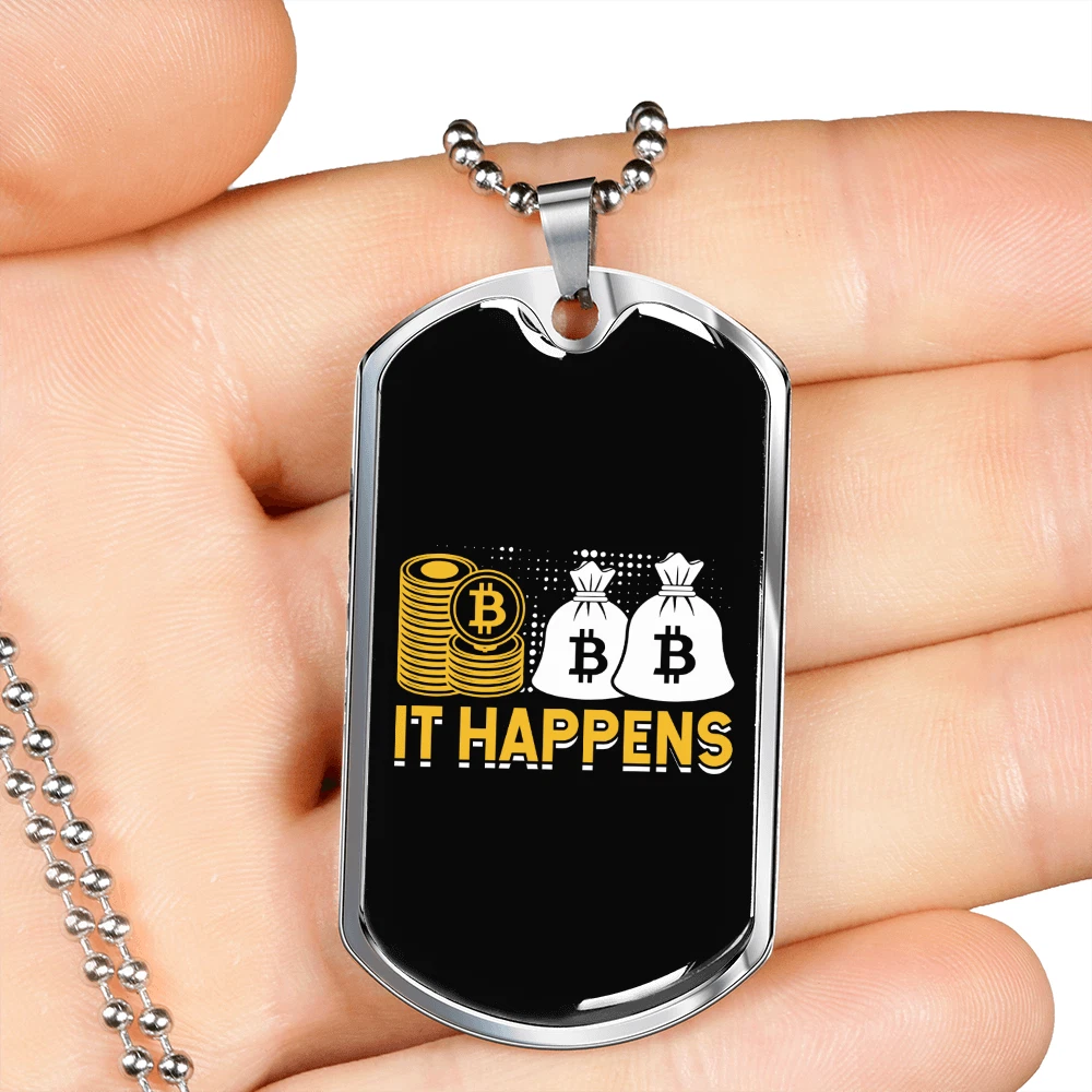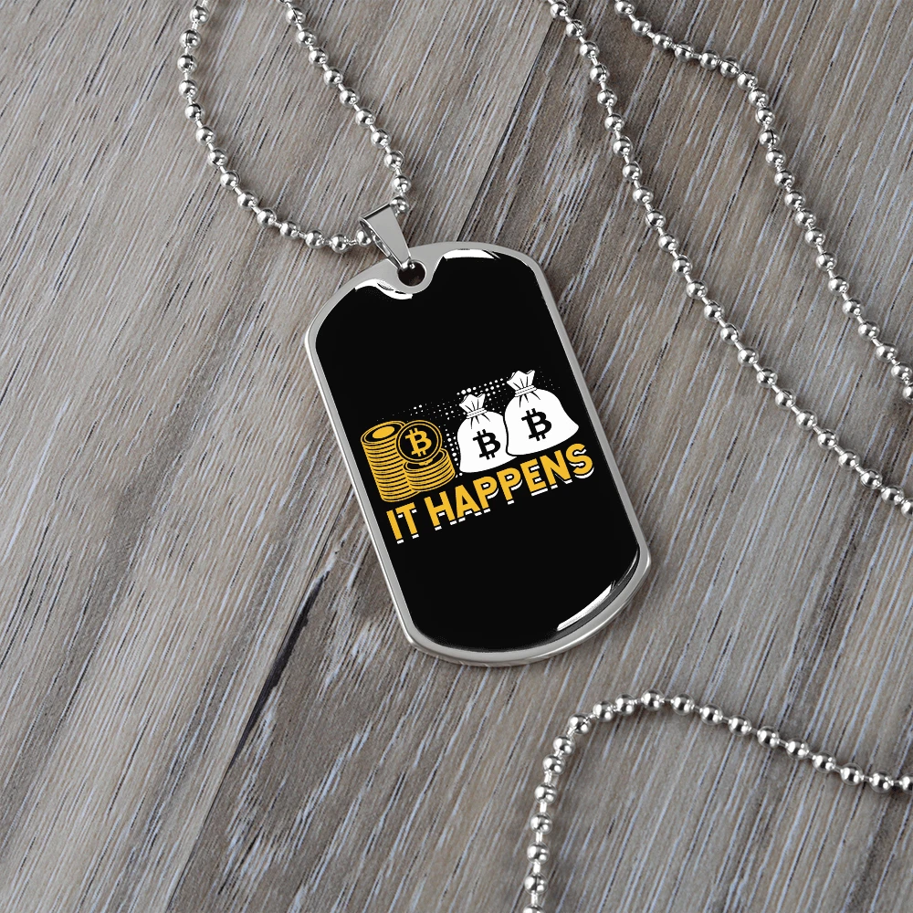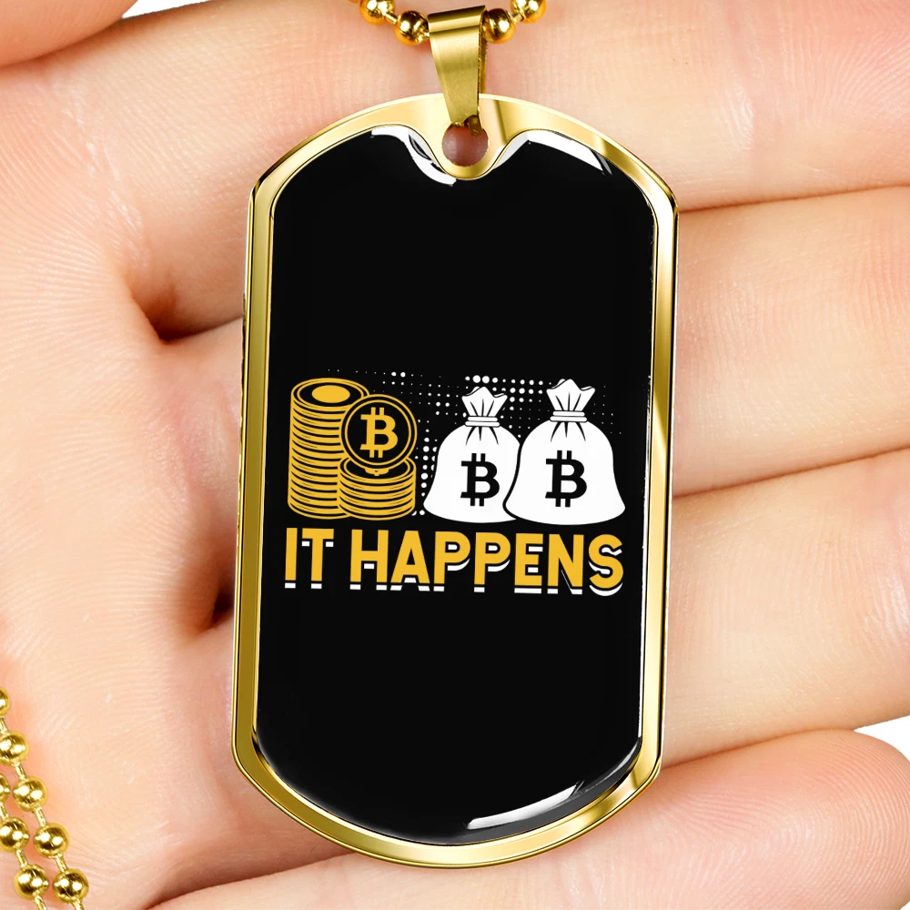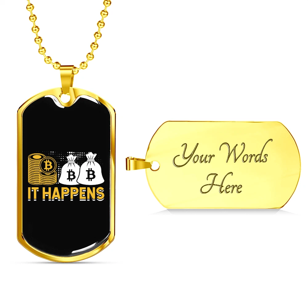 It Happens 2 Crypto Necklace Stainless Steel or 18k Gold Dog Tag 24" Chain