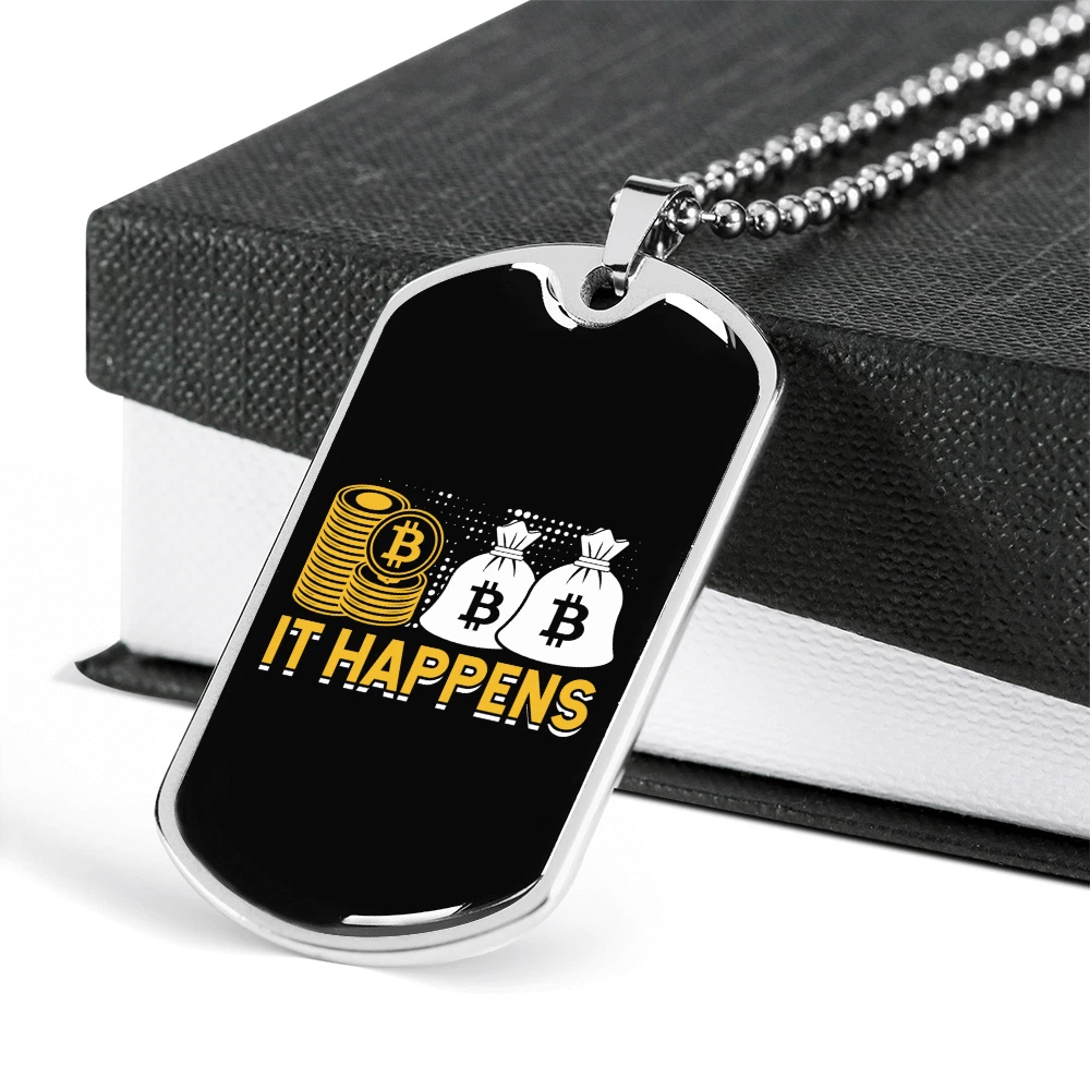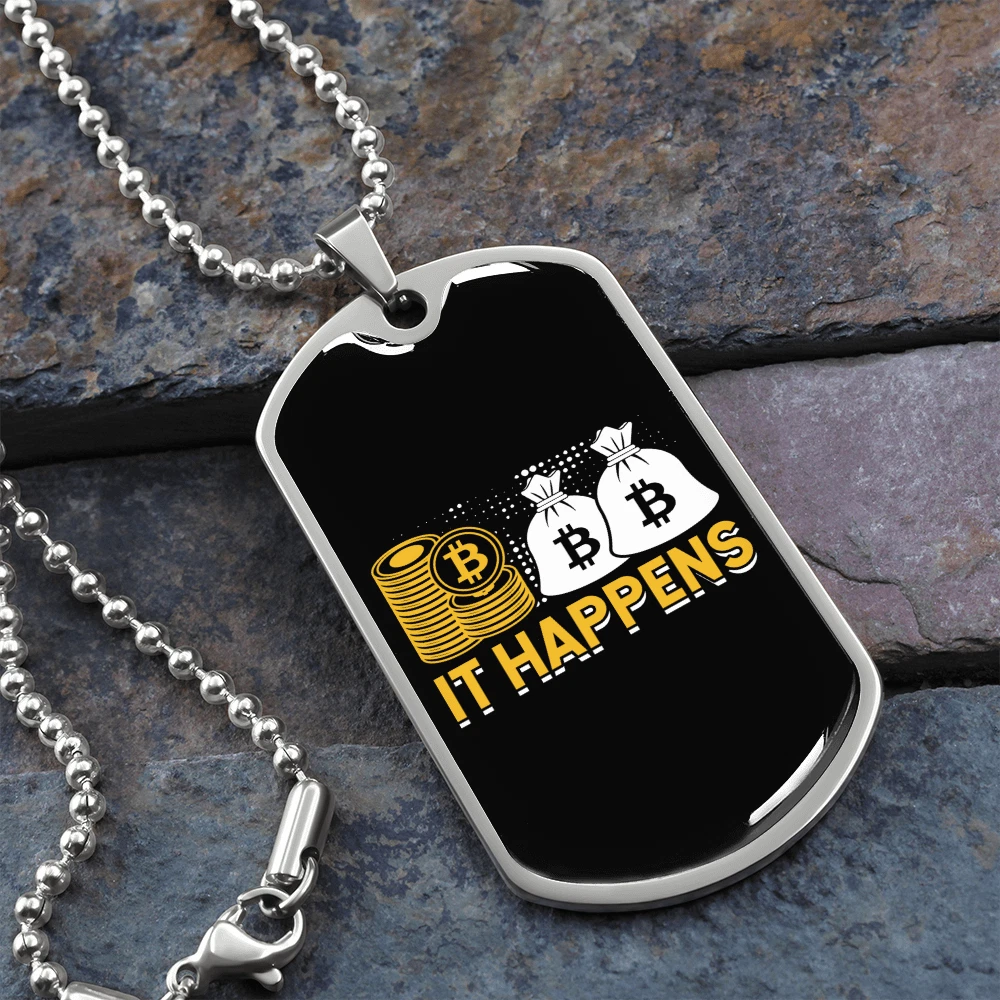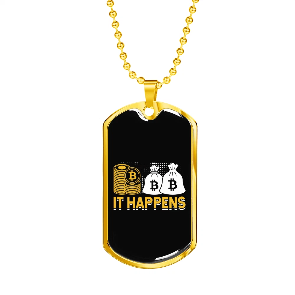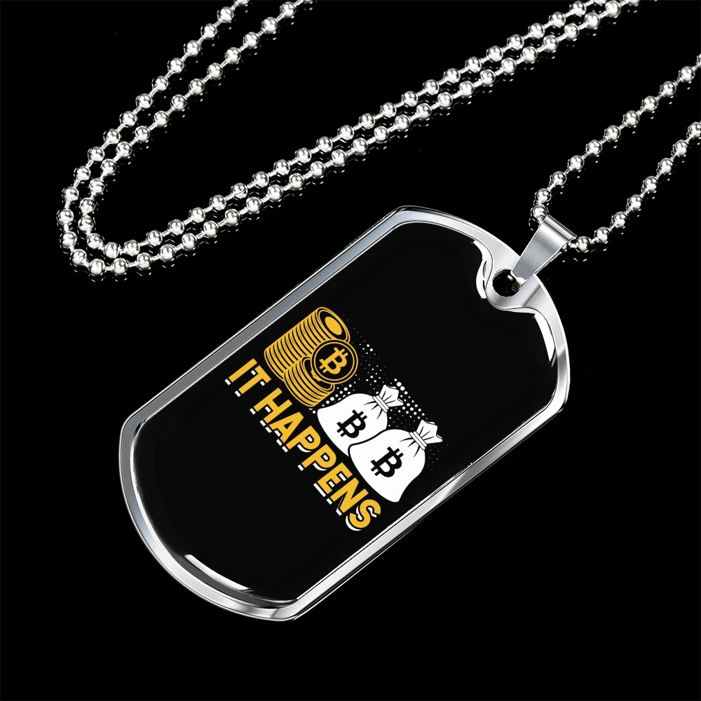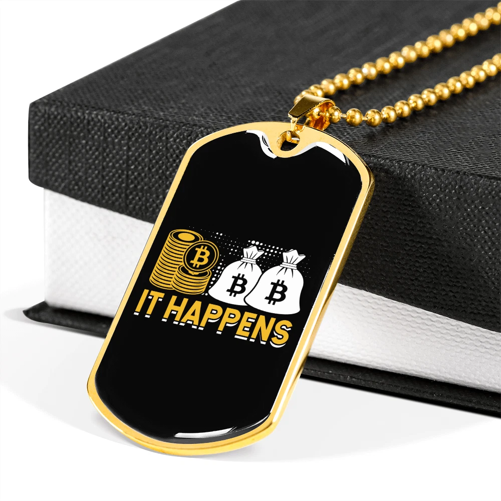 It Happens 2 Crypto Necklace Stainless Steel or 18k Gold Dog Tag 24" Chain