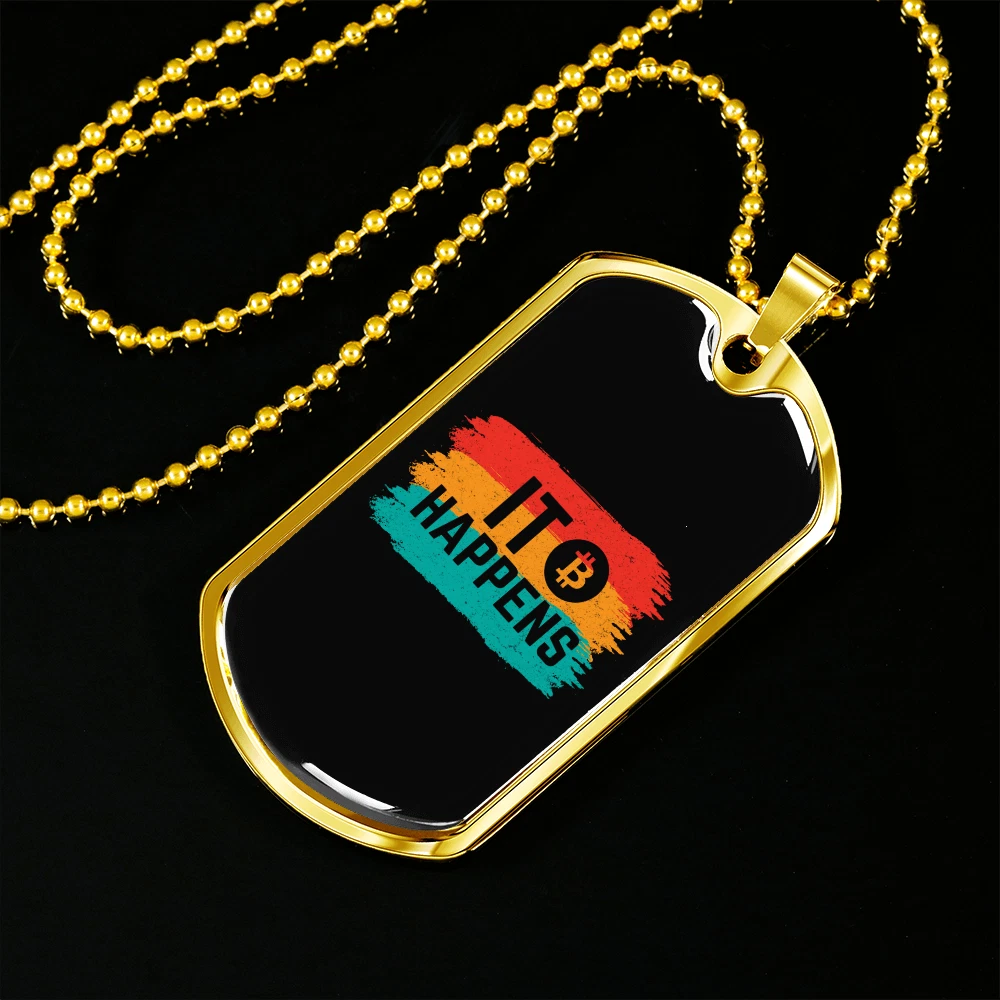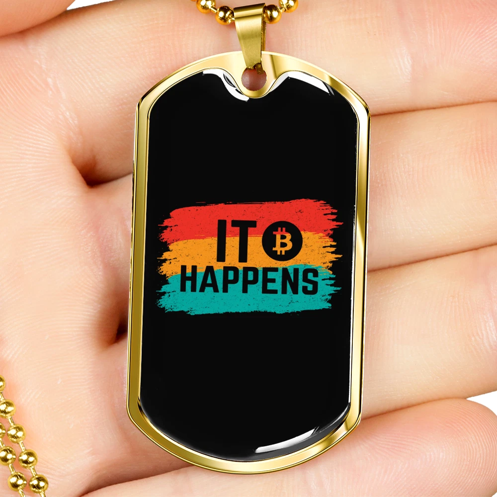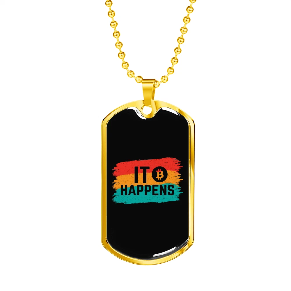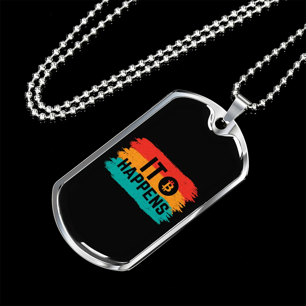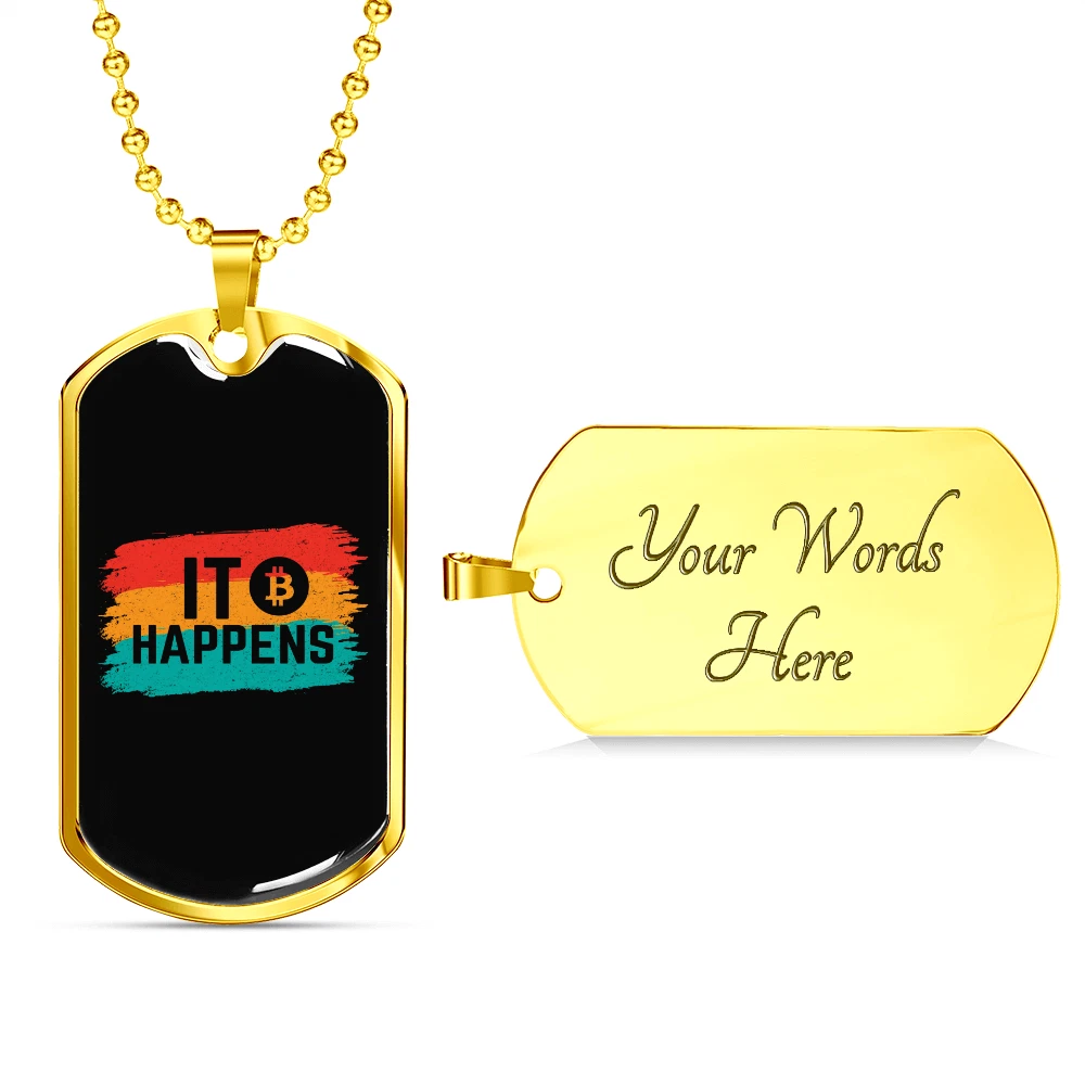 It Happens Necklace Stainless Steel or 18k Gold Dog Tag 24" Cha
