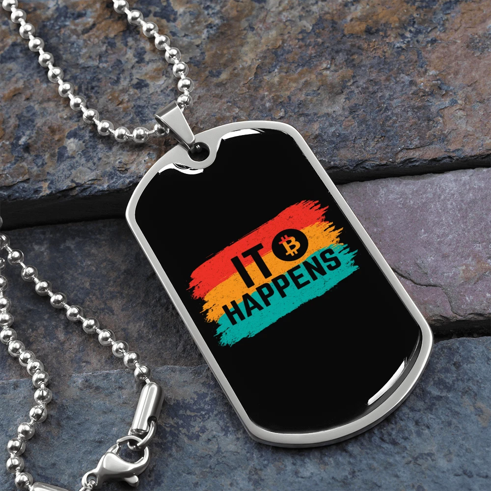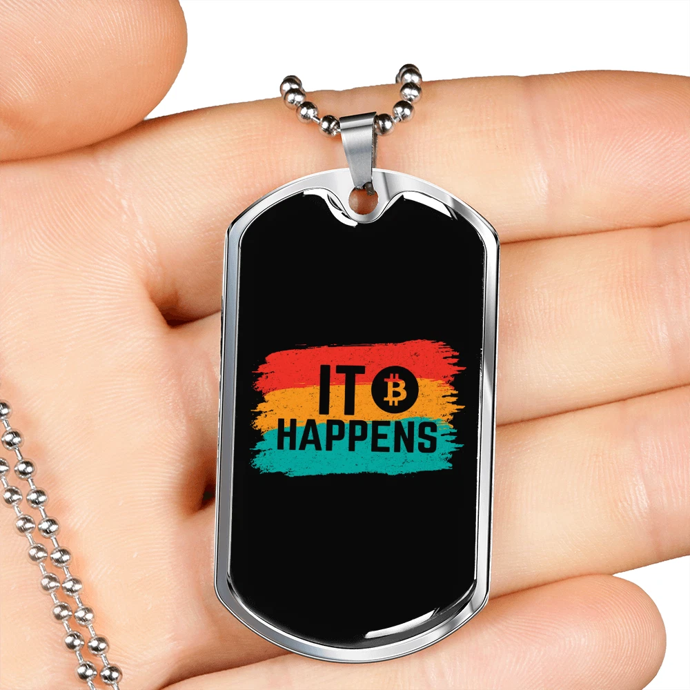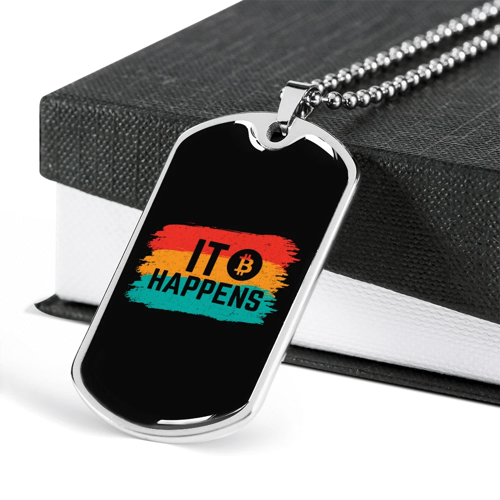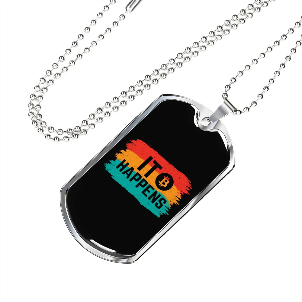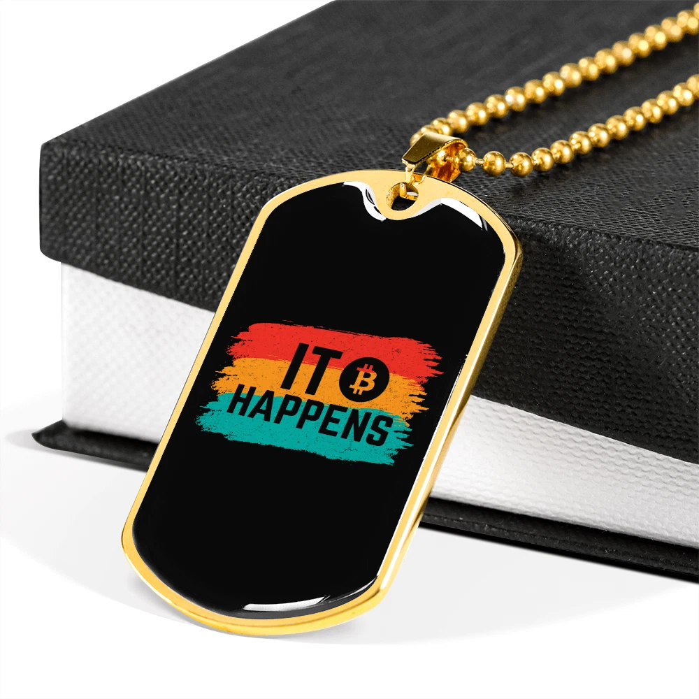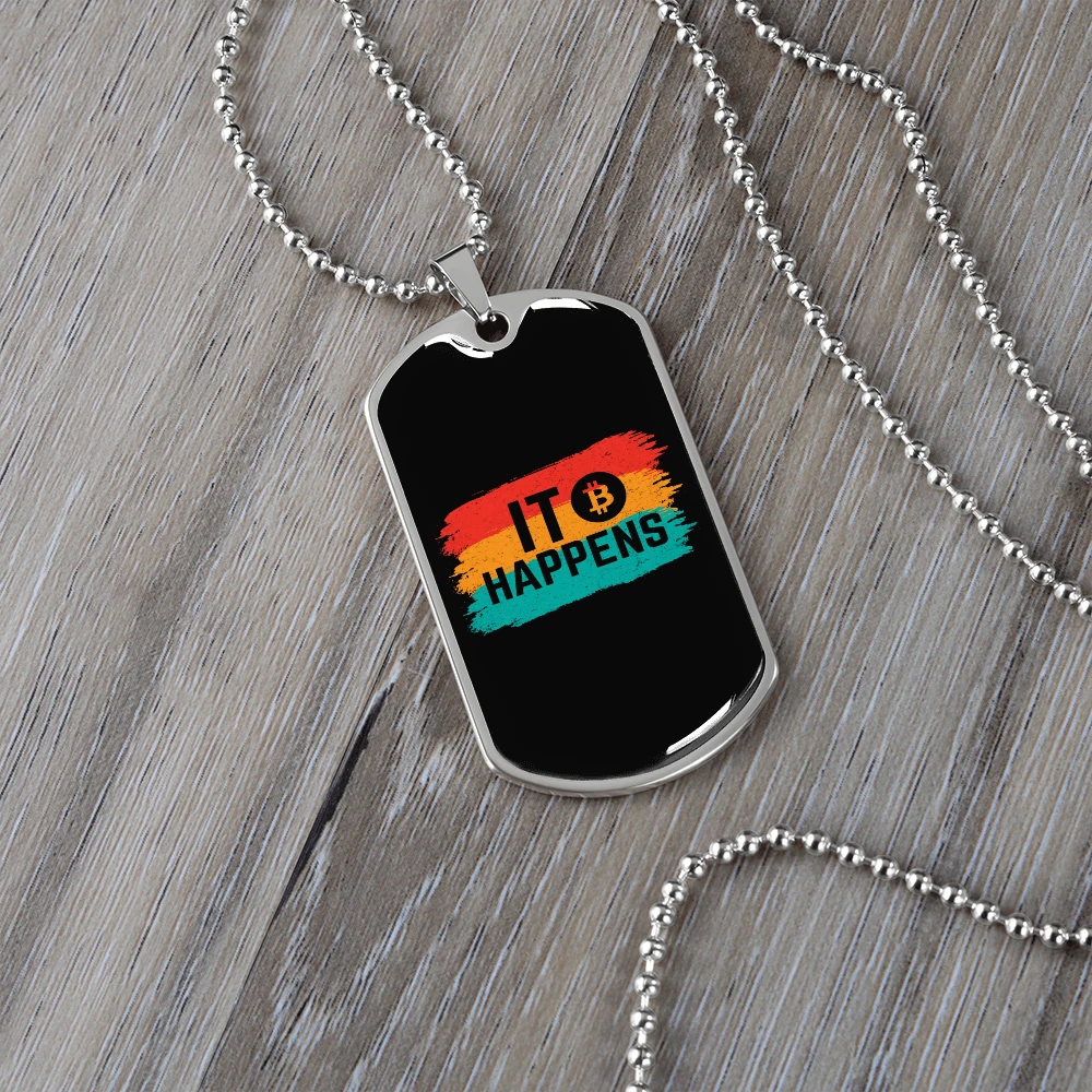 It Happens Necklace Stainless Steel or 18k Gold Dog Tag 24" Cha