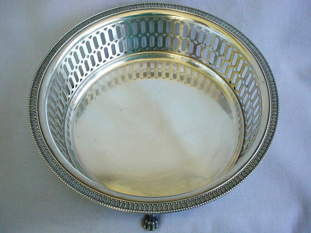 VERY NICE. SOLID 800/1000 VINTAGE ITALIAN SILVER (NOT PLATED). AN ESTATE LIQUIDATION- THE FAMILY CALLED THIS THEIR "MAGNUM HOLDER". IT WAS MY LUCKY DAY- THEY SAID IF I BOUGHT THE COASTER- I COULD HAVE THE MAGNUM OF WINE. THE WINE IS NOT INCLUDED- IT IS FOR DISPLAY ONLY- WE ARE ONLY SELLING THE COASTER. CLASSICAL DESIGN- LEAF AND DART BORDER. PAW FOOT. RETICULATED SIDES. ABOUT 3" TALL. 8" WIDE. WEIGHT 274.4 GRAMS. HAS THE ORIGINAL ITALIAN RETAILERS STICKER TO BOTTOM. WE SEE A MAKERS MARK AND THE 800 PURITY MARK TO UNDERSIDE RIM. SEE THE LAST 2 PHOTOS, THE MARK APPEARS A BIT FAINT TO US. THIS PIECE IS VERY NICE, FINE TO USE AS A BOWL OR AS A COASTER FOR YOUR FINEST MAGNUM OF CHAMPAGNE! BARGAIN PRICED WITH THE PRICE OF SILVER TODAY!! Shipping: Domestic shipping: I ship products using USPS & UPS. I do not charge a handling charge. Tracking or insurance is included in the shipping price. Local pickup available upon request. We ship at least once a week, usually Tuesday, let me know if you need it shipped sooner as we will gladly try. International shipping: I ship products using USPS. Please, be aware of your local customs office for details on how you can claim items if your package has been delayed longer than 15 days above normal delivery time. I do not charge a handling charge. Insurance is required on international purchases to ensure your item gets to you safely. Buyer is responsible for all taxes, duties, brokerage and customs fees. We do not know those charges throughout the world. Returns and Refunds: Return Policy - We are proud to offer returns within reason. I will accept returns, within 7 days of close of transaction within reason. Returns are based on buyer contact. Refund will be made in the same method as it was received by me. (meaning if you paid by Paypal - you will get a Paypal refund.) We do not sell on approval nor offer buyers remorse refunds- returns only if not as described. Communication: We check email frequently. If you do not receive a response to your question within 24 hours - it's possible we may not have gotten your email. If you have bid on the item, you can get our phone number emailed to you through the contact member feature of eBay. Feedback: We are happy to leave feedback for our customers. We would appreciate that once you receive your item, you also leave us feedback. I strive to be a 5 star seller. Your feedback is critical to my success on eBay. If you feel that you cannot leave a Positive comment with all 5 stars - I WILL EARN IT. Please do not hesitate to contact me for any reason. I am here to exceed your expectations!