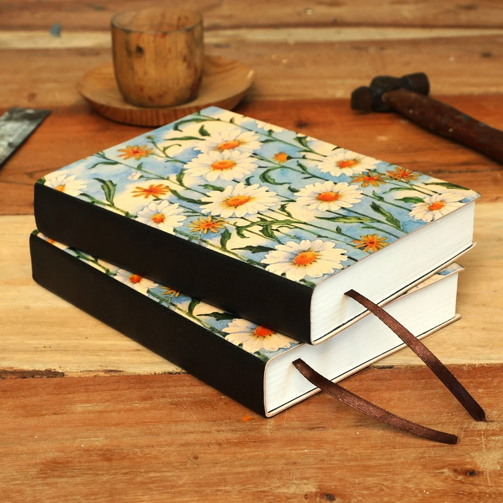 Features to Fall in Love With: Exquisite Genuine Leather Cover: The soft leather cover is adorned The sunflower symbolizes spirituality and the quest for light, making it a meaningful and inspiring choice for daily journaling. Artisan Craftsmanship: Each journal is handcrafted using genuine leather and traditional bookbinding techniques, ensuring durability and quality. High-Quality Paper: 192 sheets (384 lined ivory pages) of FSC-certified recycled 110-gram paper, perfect for writing, drawing, and creative expression. Old-World Design: The wrap-around leather tie provides an elegant, secure closure without knots, evoking the timeless charm of medieval notebooks. Sized for Versatility: At 8.5” x 6”, this journal is ideal for capturing your thoughts, ideas, and reflections wherever life leads you. A Perfect Gift for Writers, Artists, and Nature Enthusiasts: Whether for yourself or a loved one, this Sunflowers Garden journal makes a thoughtful and inspiring gift, blending beauty with functionality. Explore the beauty of nature and creativity with the Sunflowers Garden Leather Journal, where artistry and inspiration meet.