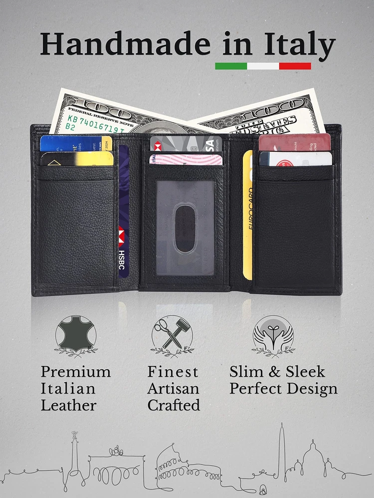 โ ๐ฃ๐ฅ๐๐ ๐๐จ๐ ๐๐ง๐๐๐๐๐ก ๐๐๐๐ง๐๐๐ฅ: Finely Handmade with Worldโs Best Premium Quality Italian Leather . โ ๐๐๐ก๐๐ ๐๐๐ ๐๐ก ๐๐ง๐๐๐ฌ : Designed by Our Team of Italian Fashion Designers with Finest Artisan Craftsmanship in Tuscany, Italy . โ ๐๐ซ๐ค๐จ๐๐ฆ๐๐ง๐ ๐๐๐๐ง ๐๐ข๐ซ: Give your Loved Ones an Exquisite Gift Box & Make them Feel Special . โ ๐ฅ๐๐๐ ๐ฆ๐๐๐จ๐ฅ๐๐ ๐ช๐๐๐๐๐ง: State of the Art RFID Blocking Technology Ensures a High Grade Security For Your Credit Cards . โ ๐ฆ๐ ๐๐ฅ๐ง & ๐ฆ๐ง๐ฌ๐๐๐ฆ๐: 08 Pockets for Credit Cards, 2 Compartments for Paper Money & a One Touch ID Window for Identity Cards. Optimum Product Size of 4.3 x 3.4 Inches .