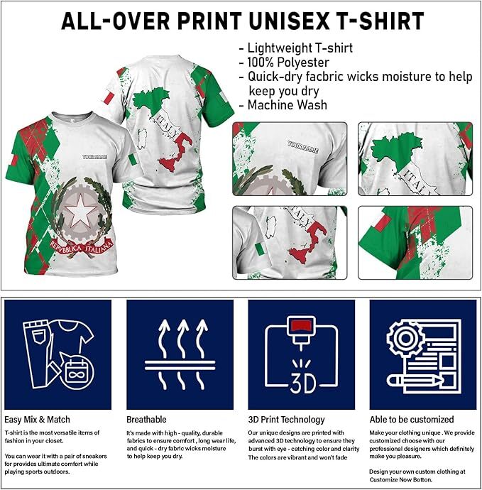 Custom Italian Pride T-Shirt with Italy Map and Flag Design