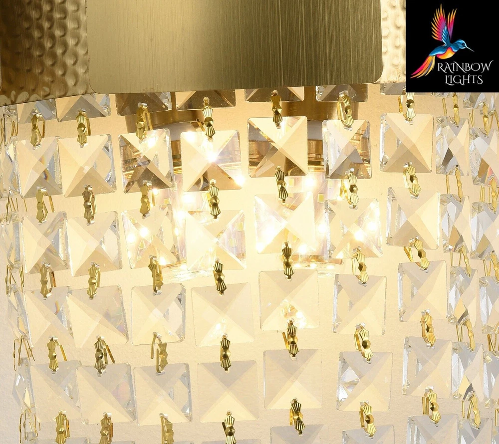 Introducing the Italian Style Crystal Tassel Golden Wall Sconce with Round Mount, a new addition that enhances your home decor with luxurious lighting from Rainbow Lights. This exquisite wall sconce is a remarkable lighting fixture that exudes sophistication and opulence through its unique design. The crystals, resembling delicate droplets, beautifully capture and refract light, creating a mesmerizing display. Its intricate shape sets it apart from traditional lighting options, adding a touch of glamour to any space. Elevate your home's ambiance with this stunning piece that seamlessly combines contemporary aesthetics with timeless elegance. Product Details: Condition: NEW Material: Crystal + Metal Width/Diameter: 24 cm Height: 40 cm Product Type: Wall Sconce Style: Contemporary Number of Bulbs: 2 Bulb Type: E12 Lamp Wattage: 10 Voltage: AC110-240V - 50/60Hz Lumens: 80-100 CCT (Color Temperature): 3000/4000/6000k Light Source: LED Shade: Three colors (White, Warm, Natural Light) Specific Uses: Indoor Weight: 2.2 kg Note: Bulb is not included in the package. Modern Chandelier, Crystal Chandelier, Light Fixtures, Hanging Lights, Farmhouse Chandelier, Antique Chandelier, Vintage Chandelier, Round Chandelier, Ceiling Lights, Luxury Chandelier, Pendant Light, Modern Lights, glass chandelier, Sputnik Lights. Crystal Chandelier Lighting - Crystal Pendant Lighting - Kitchen island Hanging Light - Dining room Pendant Light - Foyer Chandelier lighting - Bedroom Pendant light - Wall Light - Wall Sconces Listing and template services provided by inkFrog