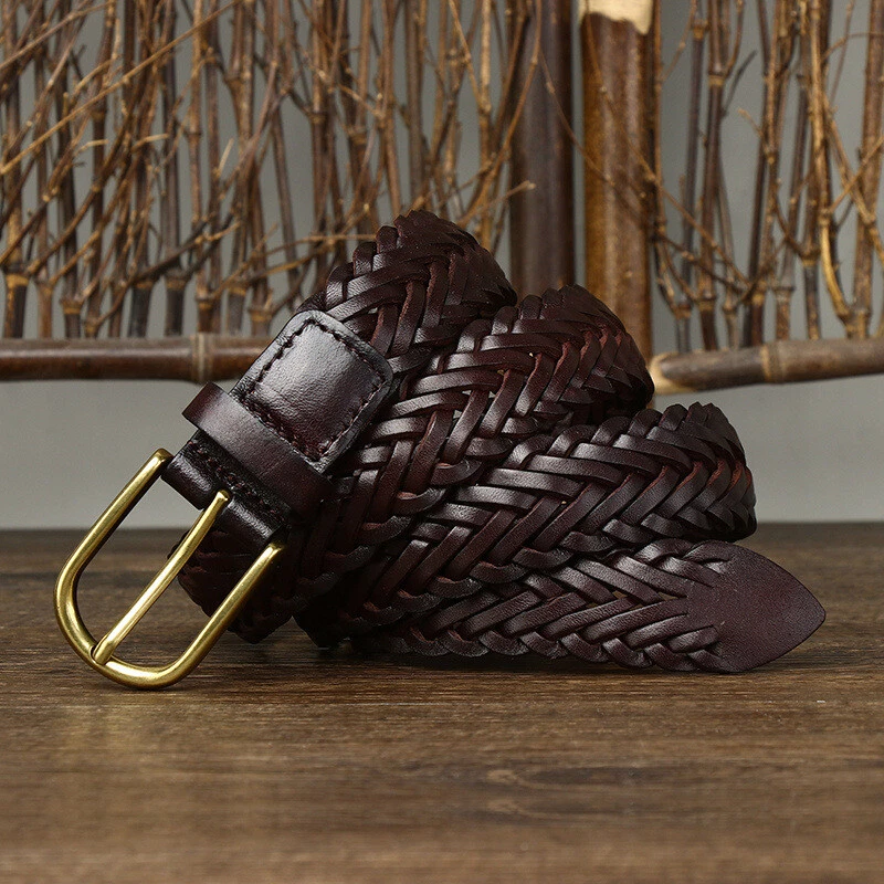 Italian Top Grain Cowhide Belts Handmade Woven Genuine Leather Pin Buckle Belt