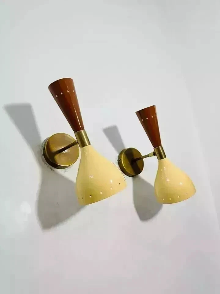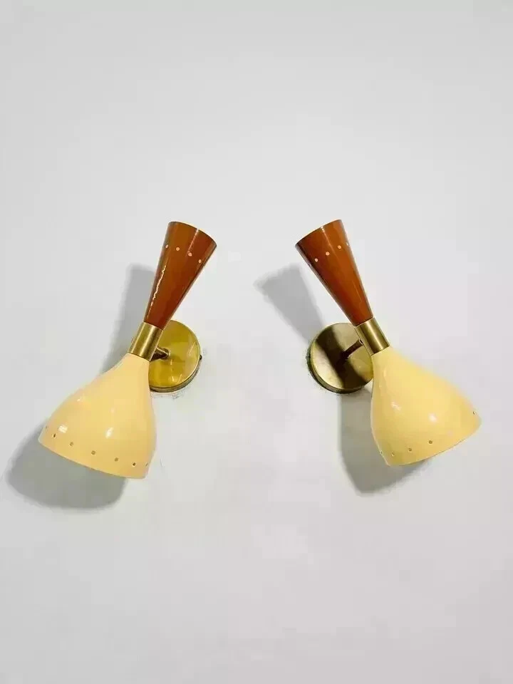 Wall Sconce Diabolo Pair of Modern Italian Wall Lights Marigold Wall Fixture Light . This is Stilnovo Style light fixture is made with UL approved parts. It has 1 arms/lights and measures 5" in diameter without light bulbs. It uses standard chandelabra socket light bulbs. We recommend 15W to 40W max. Light bulbs are not included. Ceiling canopy can be adjustable at different angles so you can hang this We hand craft all of our light fixtures. This chandelier has been made with brass material. minor variations in finish are an inherent characteristic of such material and add to the beauty and uniqueness of the product. Product Specifications: - Premium quality mid-century Wall Fixture. - Made of pure brass brass shiny finish . other brass finishes are available at request. - Measurements is :L x 10.5 inch B x 5'' inch H x 8'' inch Ceiling Wall canopy To Light Socket Edge -Antique brass - Color - As shown - Wall Fixture used standard candelabra E-12/E-14 light bulbs. (not included) - Canopy 4''inch - Reproduction Materials: - Brass, Iron - All Components are UL approved. Bulb Type: - Requires Four (4) 15 watt bulb type A (not included) - E-12/E-14 socket Rated with 125 voltage, 75 watt max. - 7 watt to 15 watt bulbs are recommended. - Incandescent Bulbs, Energy Saying, LED Bulbs.