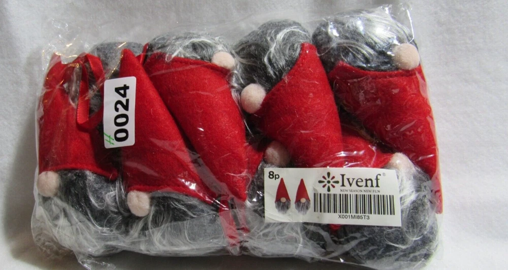 Ivenf 8 pc 8 Inch Red Grey Christmas Gnome ornaments New Add some festive cheer to your Christmas tree with these Ivenf 8 piece set of Red Grey Christmas Gnome ornaments. Crafted from high-quality cloth and fabric materials, these hanging ornaments feature a charming gnome design that is perfect for the holiday season. The multicolor accents make them a great addition to any Christmas decor. Whether you're looking to spruce up your home or searching for the perfect holiday gift, these Ivenf gnome ornaments are sure to delight. Hang them on your tree, wreath, or garland to create a cozy and inviting atmosphere. Celebrate the holiday season in style with these unique and beautiful ornaments.