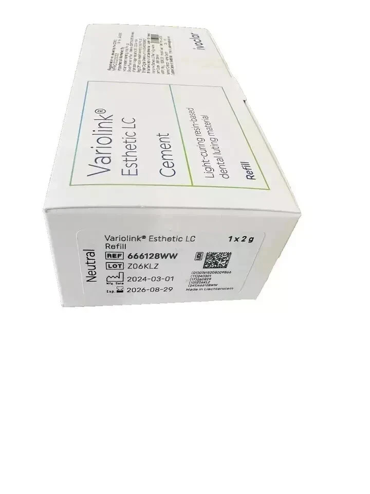 Description Variolink Esthetic LC is an esthetic light- and dual-curing luting composite for the permanent cementation of demanding ceramic and composite restorations. The cement is based on the esthetic luting composites Variolink II and Variolink Veneer, which have proven their worth in clinical use for many years. Variolink Esthetic represents a new generation of luting composites featuring excellent esthetics and user-friendly processing. Packaging: 1 x 2g Refill Disclaimer "The sale of this item may be subject to regulation by the U.S. Food and Drug Administration and state and local regulatory agencies. If so, do not bid on this item unless you are an authorized purchaser. If the item is subject to FDA regulation, I will verify your status as an authorized purchaser of this item before shipping of the item."