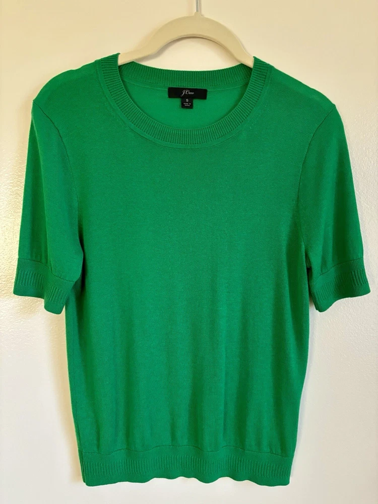 J. CREW Silk Blend Crewneck Sweater Size Small. Sea Moss Green. L6660 Short Sleeve. Excellent preowned condition.