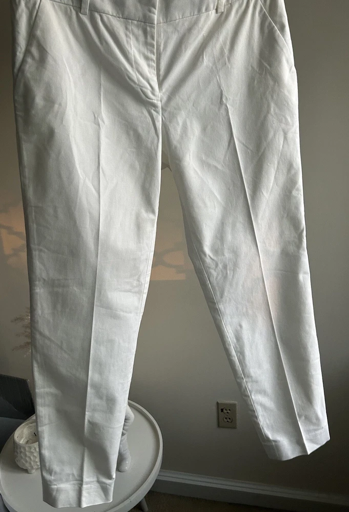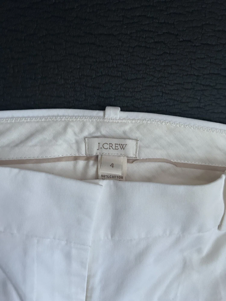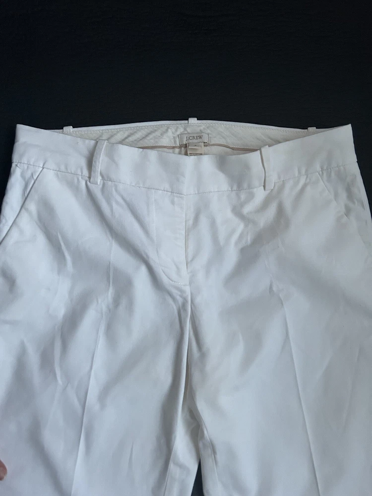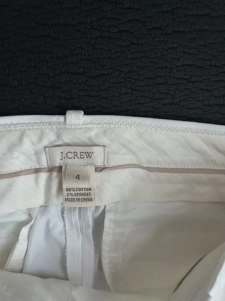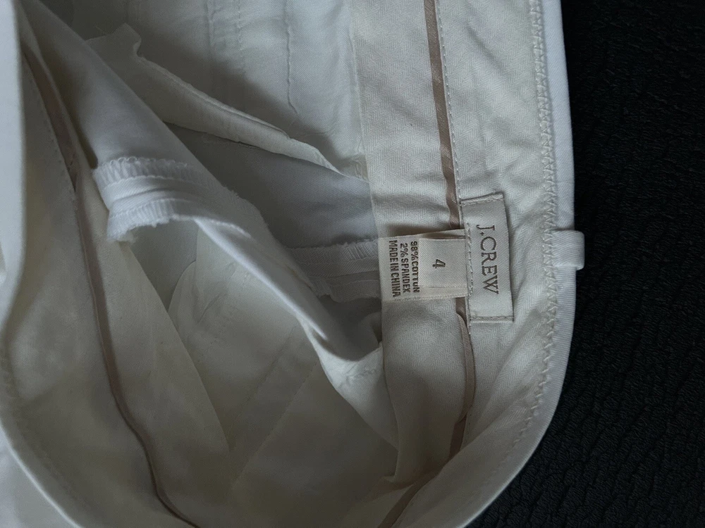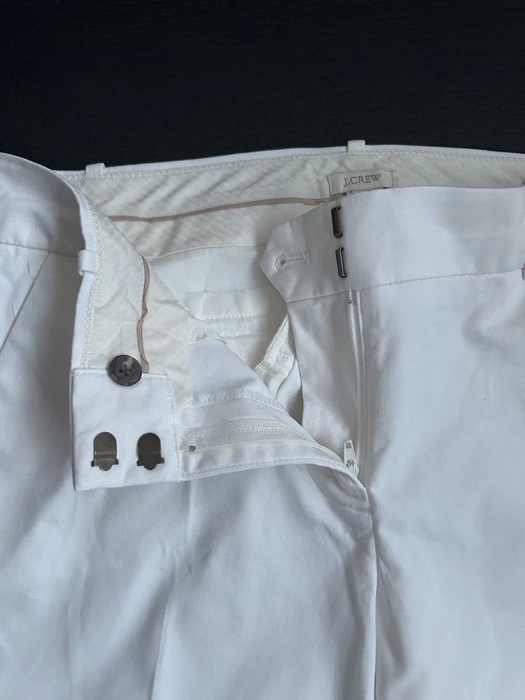 J Crew Women’s Pants Ivory Slip Crop Size 4 Hook And Eye 98% Cotton 2% spandex