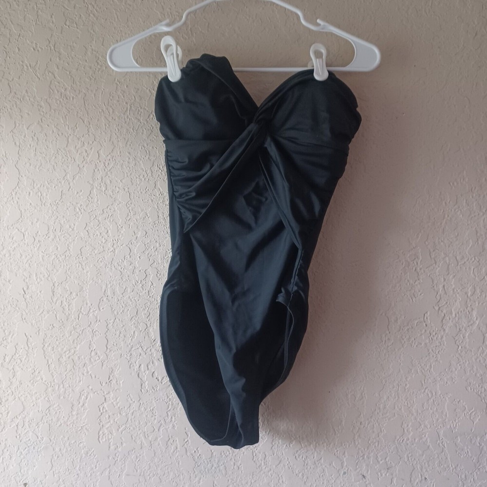 NWT J. Crew black twist front bandeau one piece swimsuit 6 strapless/halter comes with straps. May fit tighter in bust