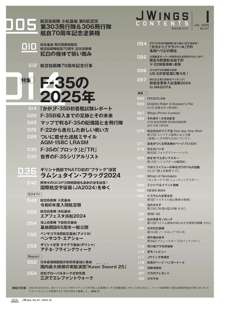 J Wings Jan 2025 Magazine Military JASDF F-35 Calendar Japanese Book