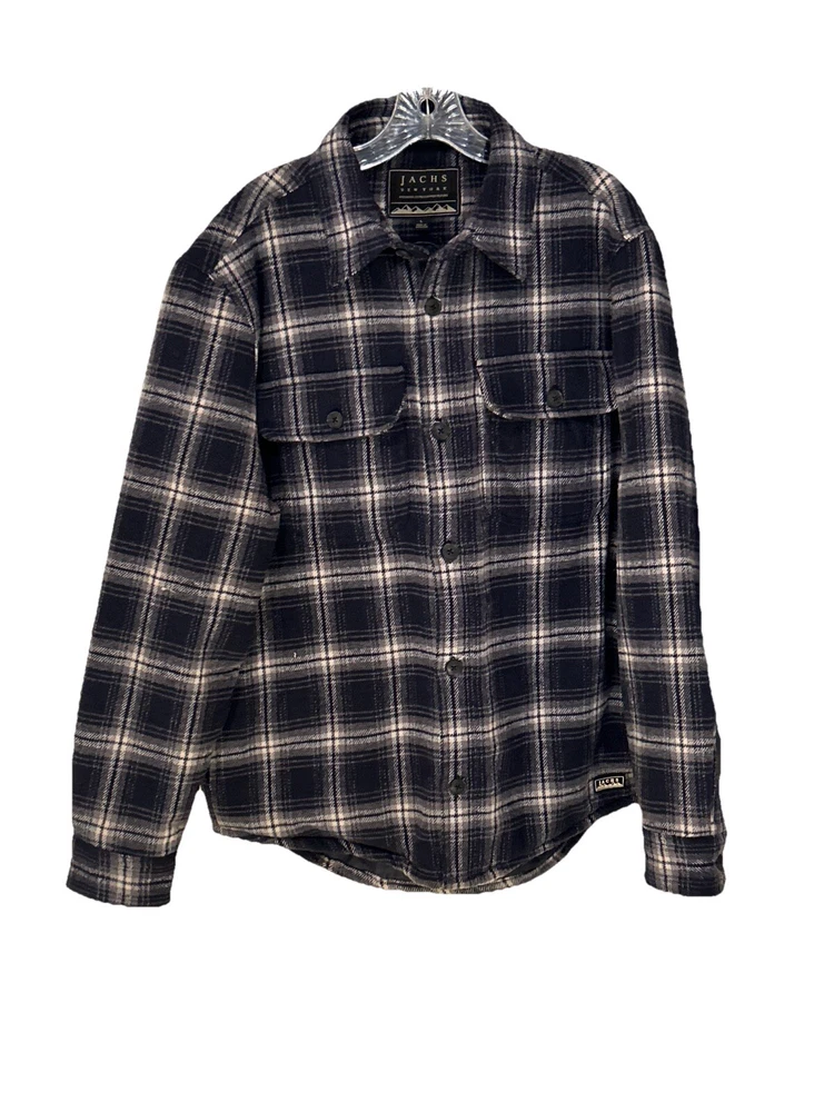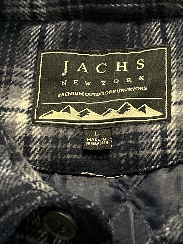 This JACHS New York jacket is a must-have for any fashion-forward man. With its blue plaid design and quilted accents, it is perfect for casual occasions in fall and winter. The jacket is made of a wool blend fabric and features a spread collar, button closure, and mid-length. The jacket is insulated with polyester and lined with polyester, making it warm and comfortable to wear. It is available in size L and can be dry cleaned for easy care. The JACHS New York jacket is a regular fit and is suitable for men who wear chest size 46 inches. Add this stylish shirt jacket to your wardrobe today!