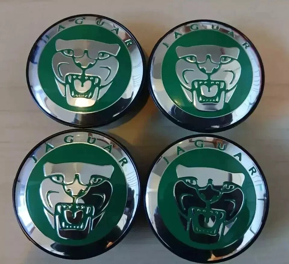 This product is a set of four wheel center caps for Jaguar vehicles. The caps have an outside diameter of 59mm and an inside diameter of 50mm. They are made of ABS and aluminum material and have an anti-fade protection finish in green color. The caps are flexible, lightweight, and car wash safe. They are easy to install and come with a 1-Month manufacturer warranty. The emblem type is Jaguar and they are suitable for placement on the rear, left, front, and right of the vehicle.