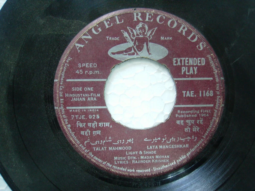 JAHAN ARA MADAN MOHAN TAE 1168 1964 RARE BOLLYWOOD india OST EP 45 rpm RECORD vg