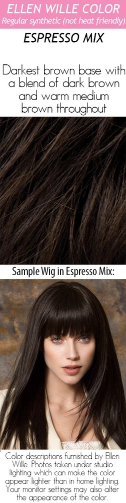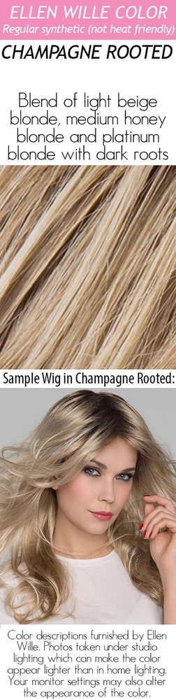 Jamila Plus by Ellen Wille is lavish with volume, body and beautiful curls! This mid-length wig features Ellen Wille's impeccable temple to temple lace front that offers styling versatility and a seamless, natural hairline. Style away from the face or however you choose. The cap design is extremely comfortable with open wefting and is ideal for a petite to average head size. The adjustable velcro straps in the nape attach to very soft felt and allow for altering or reducing the circumference size up to 1.25". The density of the ready-to-wear synthetic hair mimics biological hair and requires little to no customization or thinning. Jamila Plus is part of the Ellen Wille Hair Power Collection. Features: From Ellen Wille's Power collection. Lace Front: Mimics a natural hairline,ready to wear and virtually invisible. Lace front contours to the shape of your head, creating a natural looking hairline and off-the-face styling versatility. Basic Cap - Open wefting that allows for air ventilation and is known for durability Velvet Ear Tabs: Allows smooth customization with bendable wire. Adjustable Tabs: Allows the wearer to adjust the circumference up to 1/2 an inch. Synthetic hair. Colors Shown in Photos: Model in sleeveless black top: Bernstein Rooted | Blonde model: Light Honey Rooted Hair Lengths: Front: 4 - 7" | Crown: 3 - 8" | Sides: 6 - 10" | Nape: 3.5 - 9" Cap Size: Petite/Average Buy with Confidence! Pinkee Promise is an authorized Ellen Wille retailer. Our licensed fitters and stylists are ready to help you find the right piece for you, so contact us if you need assistance choosing a style or color that will be right for you! Most of our wigs and hairpieces ship directly from the manufacturer or distributor, so you never have to worry about their authenticity. We use Ellen Wille 's professionally photographed images that are the very best available to ensure color accuracy, however we can't control the way the colors will look on your monitor. If you are unsure of a color or have any questions, please contact us so that we can help you place your order.
