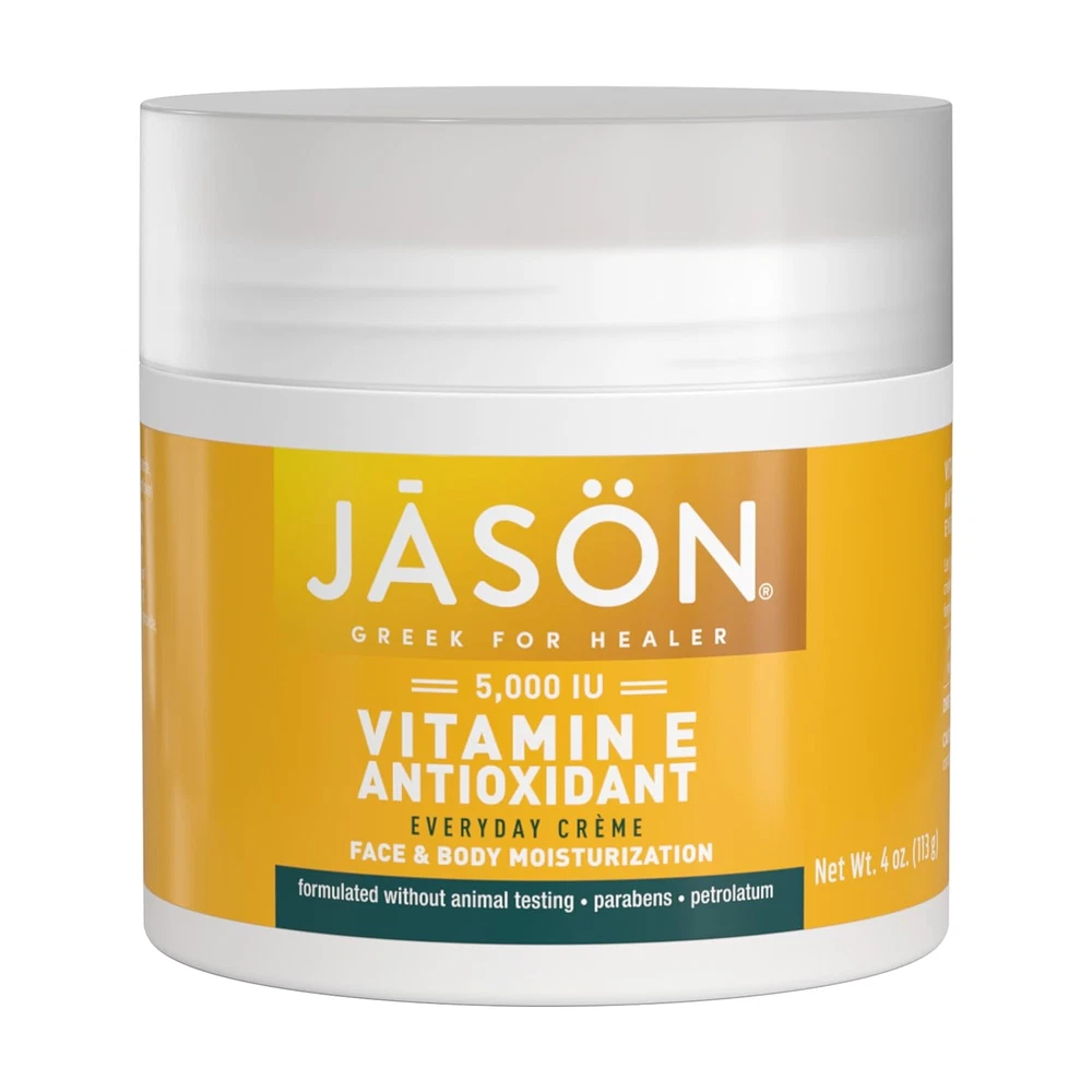 JASON Vitamin E 5,000 IU Moisturizing Crème, for Face and Body, 4 Fluid Ounces Special Formula: This formula, infused with a blend of Vitamin E and Avocado Oils, leaves skin feeling moisturized and nourished Take Your Skin From Dull to Radiant: Let your inner radiance shine through with our botanically-inspired daily crème. Take your skin from dull and lackluster to glowing and vibrant Formulated Without: This product is formulated without animal testing, parabens, sulfates, or petrolatum. It is also cruelty-free and Leaping Bunny Certified, providing assurance of no animal testing Made for All: At JASON, we deliver products that refresh, calm, moisturize, and so much more– for everyone. Discover our full line of gender-neutral personal care products for skincare, haircare, and oral hygiene Direction for Use: Apply daily on the face and body. Massage thoroughly where needed 2.8 inches x 2.8 inches x 2.7 inches. Weight: 0.32 oz Item model number 914788 Item dimensions L x W x H 2.8 x 2.8 x 2.7 inches Item Volume 4 Fluid Ounces Active Ingredients function(f) {var _np=(window.P._namespace("DetailPageProductOverviewTemplatesJava"));if(_np.guardFatal){_np.guardFatal(f)(_np);}else{f(_np);}}(function(P) { P.when('A').execute(function(A){ A.on('a:truncate:po-attribute-truncate-4:updated', function(data) { var isTruncated = !data.truncateInstance.getIfTextFits(); var seeMoreElement = document.getElementById('po-attribute-see-more-id-4'); if(seeMoreElement) { seeMoreElement.style.display = isTruncated ? '' : 'none'; } }) }); })); aloe barbadensis leaf juice,ascorbic acid,avocado,benzyl alcohol,carbomer,cetyl alcohol,glycerin,glyceryl stearate,persea,potassium sorbate,sodium benzoate,sorbic acid,vitamin e See more Product Dimensions 2.8 x 2.8 x 2.7 inches; 0.32 ounces Country of Origin USA Age Range (Description) Adult,Teen Is Discontinued By Manufacturer No Manufacturer Natural