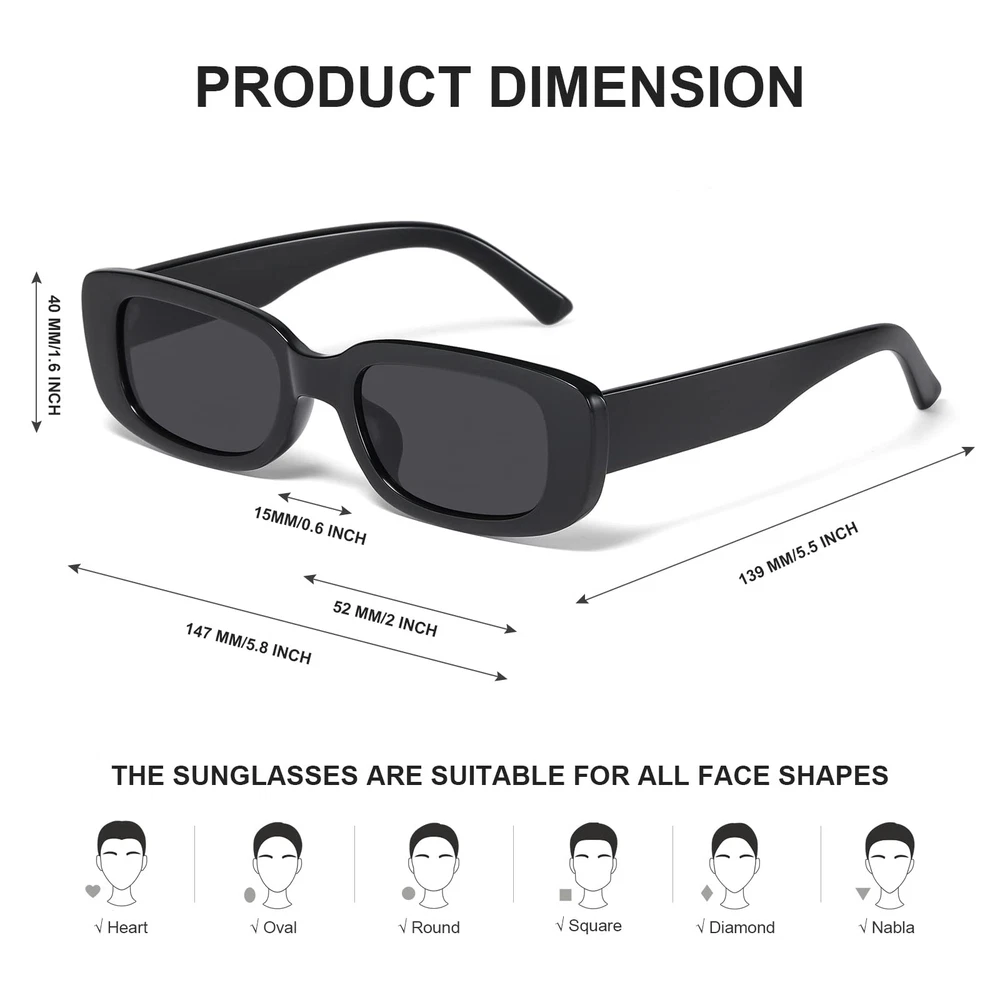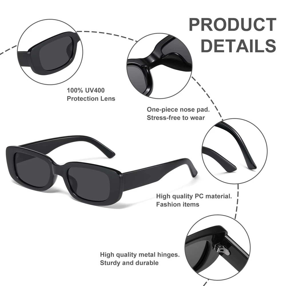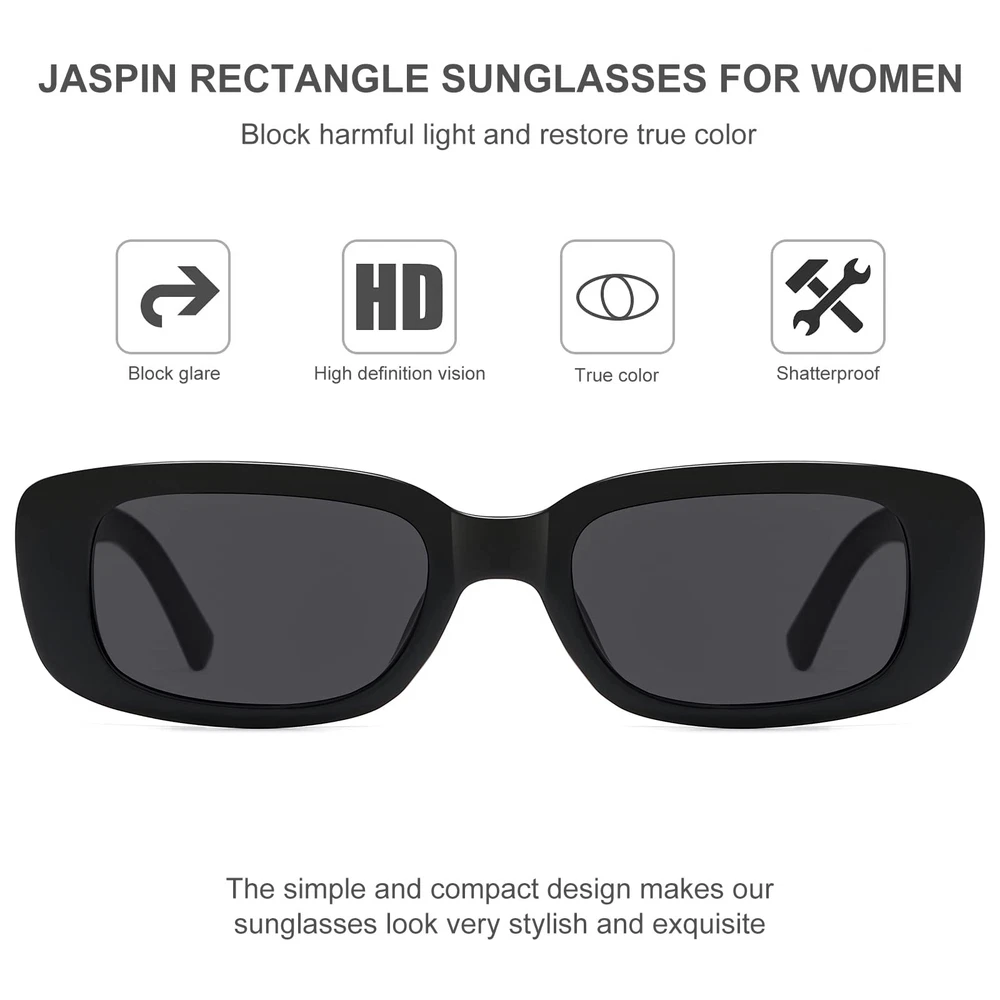 JASPIN Rectangle Sunglasses for Women Men Trendy Y2k Retro 90s Sun Glasses UV40 Features: Y2K RECTANGLE SUNGLASSES - These trandy sunglasses with thick frame and chunky lenses are simple yet vintage in design and can be worn with a variety of outfits, making them a must-have for your retro chic HIGH QUALITY MATERIALS - Made of high quality and lightweight PC material, thick and slim, the reinforced metal hinge is not easily deformed, and the integrated nose pad will not press your nose when worn for long periods of time, giving you a unique and comfortable wearing experience UV400 PROTECTION - These rectangle sunglasses block 100% of harmful rays and protect your eyes from long-term UV damage, so you can wear them outside with confidence SUITABLE - Not only is it a retro style from the 90s, but it is also a very popular y2k style at the moment, perfect for outdoor activities such as driving, selfies, shopping and travelling, and suitable for everyday wear all year round SERVICE ORIENTED - JASPIN womens sunglasses focus on quality and chase fashion, you can choose at will, if there are any product quality problems can contact us, We will give you a satisfactory answer within 24 hours Details: Description Sunglasses Womens Rectangle Sunglasses Y2k Trendy Retro Features: Y2K RECTANGLE SUNGLASSES - These trandy sunglasses with thick frame and chunky lenses are simple yet vintage in design and can be worn with a variety of outfits, making them a must-have for your retro chic HIGH QUALITY MATERIALS - Made of high quality and lightweight PC material, thick and slim, the reinforced metal hinge is not easily deformed, and the integrated nose pad will not press your nose when worn for long periods of time, giving you a unique and comfortable wearing experience UV400 PROTECTION - These rectangle sunglasses block 100% of harmful rays and protect your eyes from long-term UV damage, so you can wear them outside with confidence SUITABLE - Not only is it a retro style from the 90s, but it is also a very popular y2k style at the moment, perfect for outdoor activities such as driving, selfies, shopping and travelling, and suitable for everyday wear all year round SERVICE ORIENTED - JASPIN womens sunglasses focus on quality and chase fashion, you can choose at will, if there are any product quality problems can contact us, We will give you a satisfactory answer within 24 hours Details: Description Sunglasses Womens Rectangle Sunglasses Y2k Trendy Retro eBay integration by