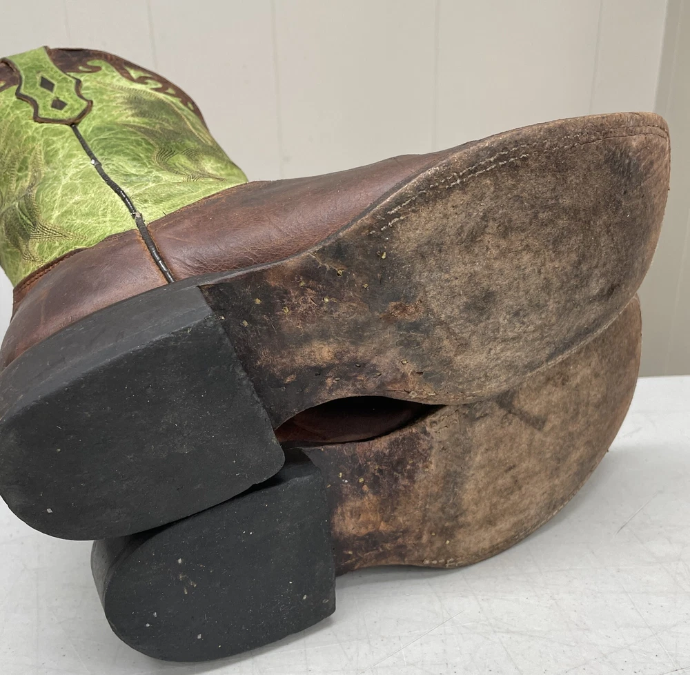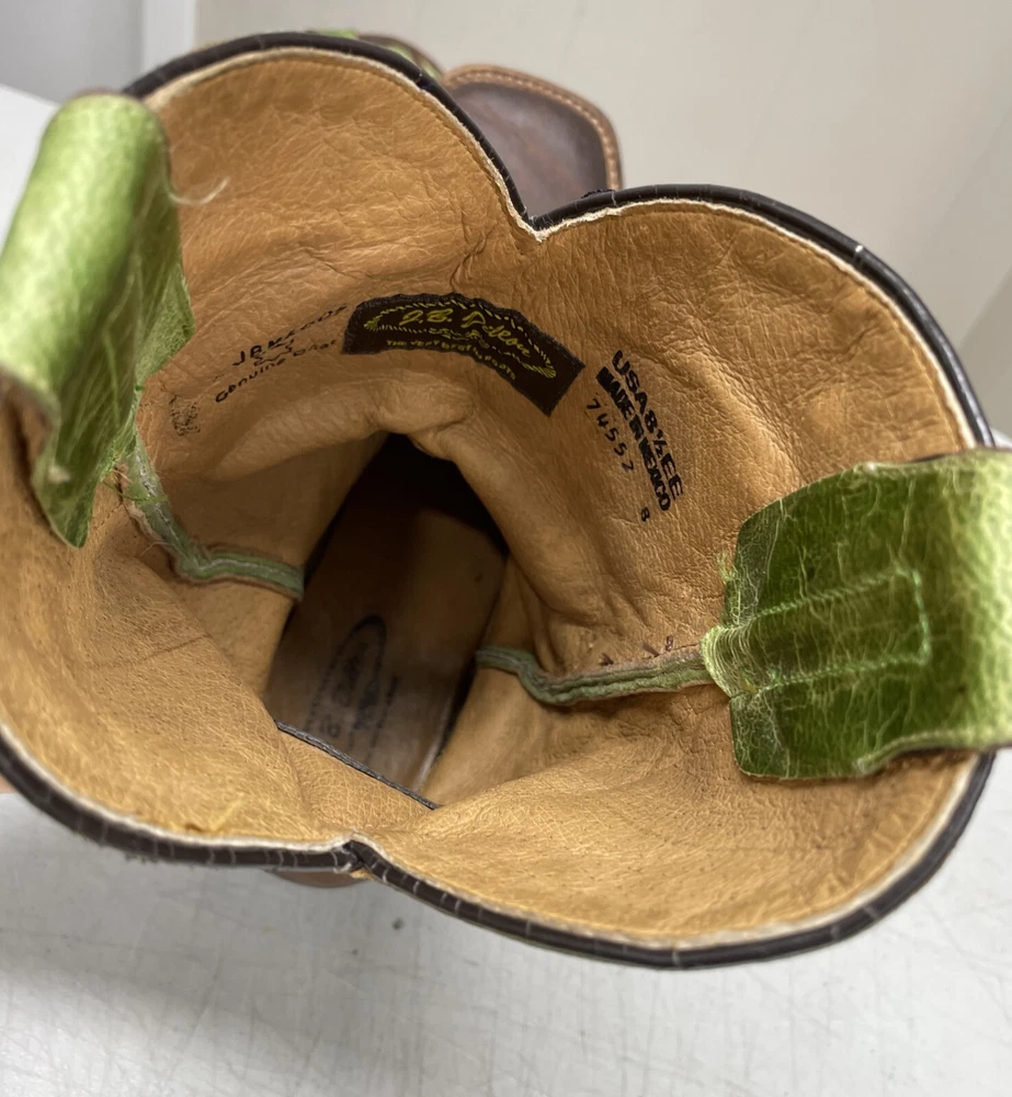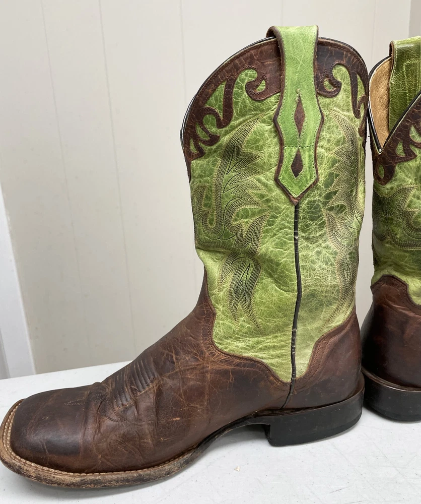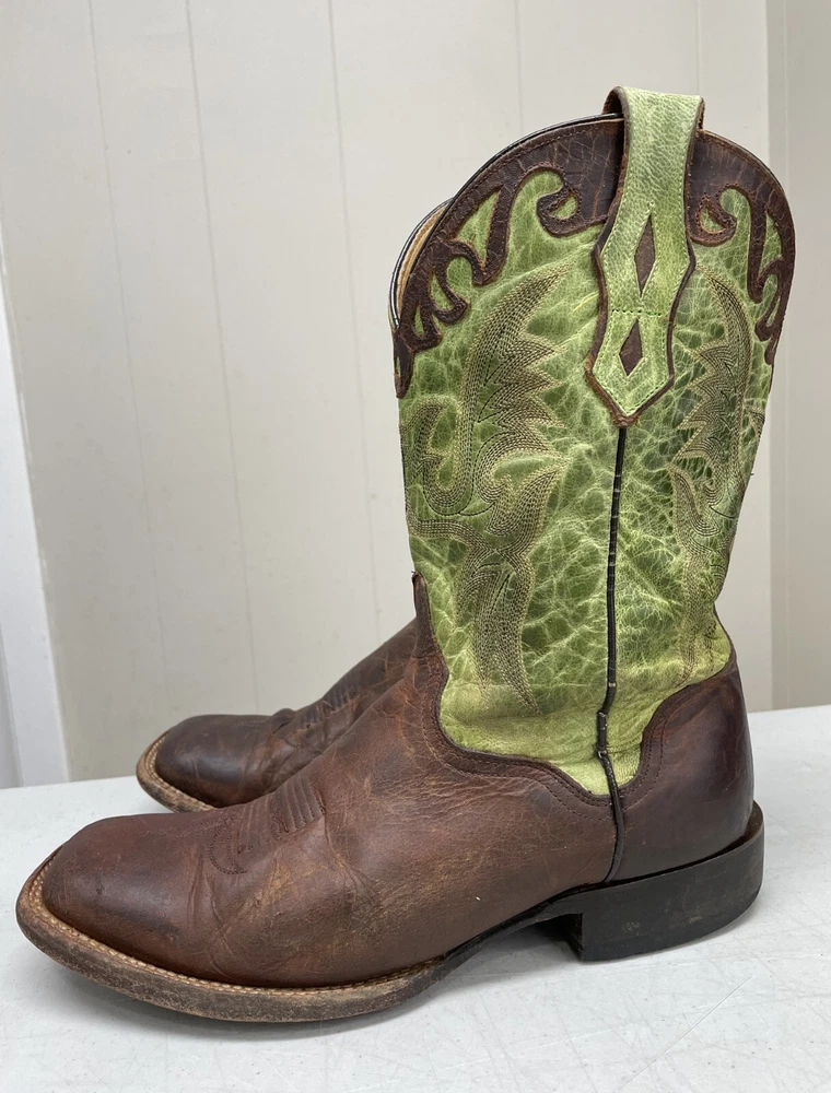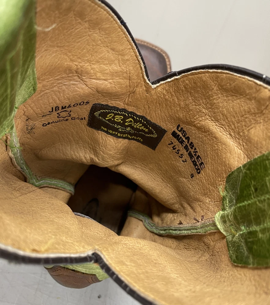 J.B. Dillon Goat Leather Green Western Cowboy Boots Extra Wide Men's 8.5 EE