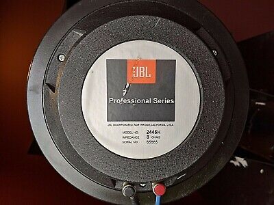 \ Welcome To International Cinema Equipment A Division of Magna Tech Electronic Company Inc. ICE-MTE has provided quality products and services to the Cinema & AV Integration business Industry since 1956 . We are pleased to offer for your consideration Selling by the Piece/System JBL Professional Series Full Range JBL Professional 4670D Behind the Screen Cinema Speaker System The System Includes: Dual LF Drivers HF Driver with throat HF Horn Cabinet Good Used Condition 90 Day limited Parts Warranty Specifications: Frequency Range: 34 Hz to 20 kHz Sensitivity: 100 dB 1 watt, 1 meter (3.3 ft) Power Capacity: 600 watt continuous IEC pink noise Components: Dual 380 mm (15 in) low frequency loudspeakers 100 mm (4 in) compression driver 90° x 40° Constant-Coverage Bi-Radial ® horn Simple field assembly reduces labor costs The JBL 4670D provides powerful, smooth and accurate reproduction of cinema soundtracks from a compact and cost effective system. The system is comprised of two parts: the 4670D-HF high frequency pack and the 4638TH low frequency system. The 4670D-HF high frequency pack features the JBL 2446H, 100 mm (4 in) diaphragm compression driver, JBL 2380A Bi-Radial ® horn and JBL 2509 adjustable bracket. Together, these elements provide clear, accurate repro- duction of the mid/high frequency information. All of these components come pre-assembled to reduce field assembly time thus reducing installa- tion costs. The 4638TH employs the latest in JBL low frequency transducer technology offering exceptional performance ben- efits. The JBL 2035H 380 mm (15 in) transducer employs a copper-sleeved magnetic pole piece providing a sta- bilized magnetic field which provides lower 2nd and 3rd order harmonic distortion and flat power response. The copper-sleeved pole piece reduces flux modulation and acts as a shorted turn causing the impedance curve to flatten at higher frequencies. This helps in maintaining a smooth transition between the low and high frequency devices in the crossover region producing, among other things, accurate reproduction of dialog throughout the entire listening area. Specifications : SYSTEM ELEMENTS: SYSTEM SPECIFICATIONS: Frequency range (-10 dB): Frequency response ( ± 3 dB): Power capacity 1 : Sensitivity: Nominal impedance: 1-JBL 4670D-HF 1-JBL 4638TH 34 Hz - 20 kHz 40 Hz - 16 kHz 600 W continuous pink noise 100 dB 1 W (2.83V) 1 m (3.3 ft) 4 ohms Crossover frequency: 800 Hz Nominal coverage: Half-space reference efficiency: Maximum continuous acoustical power output (sine wave input): System polarity: Input connector: High frequency output connector: 4638TH LOW FREQUENCY SYSTEM: Net system weight: Shipping weight: Dimensions: HxWxD 4670D-HF HIGH FREQUENCY SYSTEM: Net system weight: Shipping weight: Dimensions: HxWxD 90° horizontal, 40° vertical 6.3% 28 acoustic watts Positive voltage to red terminal produces forward cone motion Color-coded push terminals Color-coded push terminals 2-2035HPL 380 mm (15 in) low frequency transducers l-4508A low frequency enclosure l-N4638 network Weight 66.2 kg (146 lb) Unpacked 991 mm x 648 mm x 451 mm (39inx251⁄2 inx173⁄4in) l-2380A Bi-Radial horn l-2446H High frequency driver l-2509B Adjustable bracket 23.6 kg (52 lb) 336 mm x 445 mm x 279 mm (131⁄4inx17%inx11in) 4670D Cinema Loudspeaker System The JBL 4638TH utilizes a new 600 watt IEC pink noise rated crossover which features Constant-Coverage horn equalization for both 2380A and 2360A Series Bi-Radial ® horns. The enclosure is constructed of dense stock and is extensively braced on all panels reducing cabinet resonances. Net internal volume is 2251(8 cu ft) and the enclosure is tuned to 40 Hz with large port tubes, ensuring minimum turbulence at full power input at low frequencies . Please note: Crossover not included If you are going to use this system with an external Crossover for Bi-Amping set up you will require an Electronic Crossover. If you are planning to use this as a passive system you will require a passive crossover . Neither is in included in this offer. Consult with us for suggestions and a quote if needed. Photos are typical of several in Stock. Take advantage of this special offer while supplies last! Magna-Tech is a full service dealer distributor for all types of Both New & Pre-Owned Analog, Digital Theater and AV Equipment. Digital and Analog 16-35 & 70mm Projectors Digital & Analog Production & Post Production Equipment. We are Authorized dealers and support for Dolby, JBL, QSC, BARCO, Christie, NEC, OSRAM, Ushio, Schneider, GDC, EOMAC. See our eBay Store for a Variety of Gold Age Hollywood Studio Movie Production Gear and early Vintage and Antique Items for the Cinema. Worldwide Expert installation service and support.