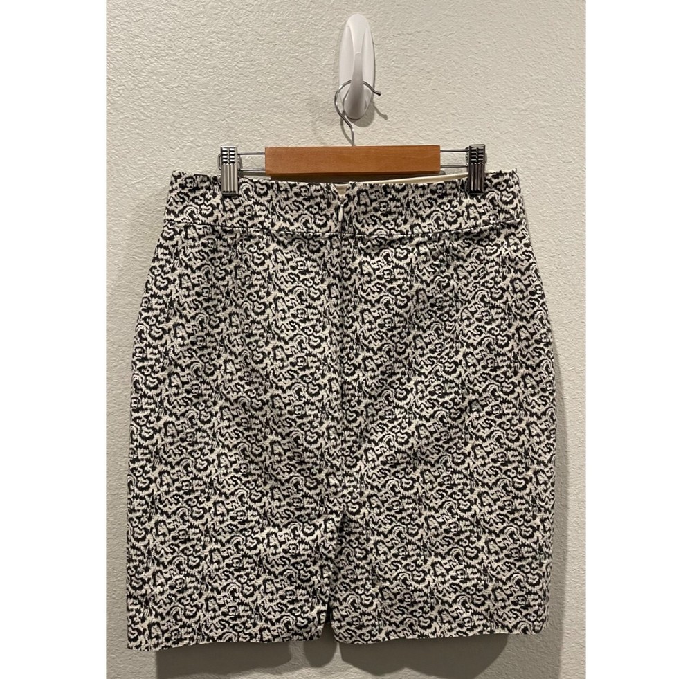 J.CREW White And Black Printed Pencil Mini Skirt. Size 6 Excellent pre-owned condition Measurements aprox: Waist 14" Length 19" Hip 17" 98% COTTON 2% SPANDEX LINING 100% POLYESTER