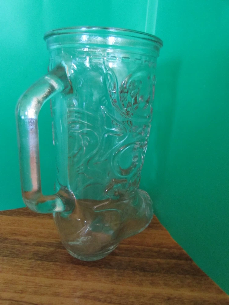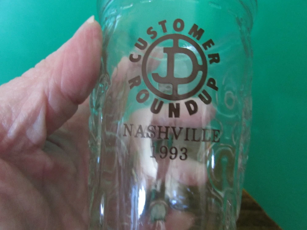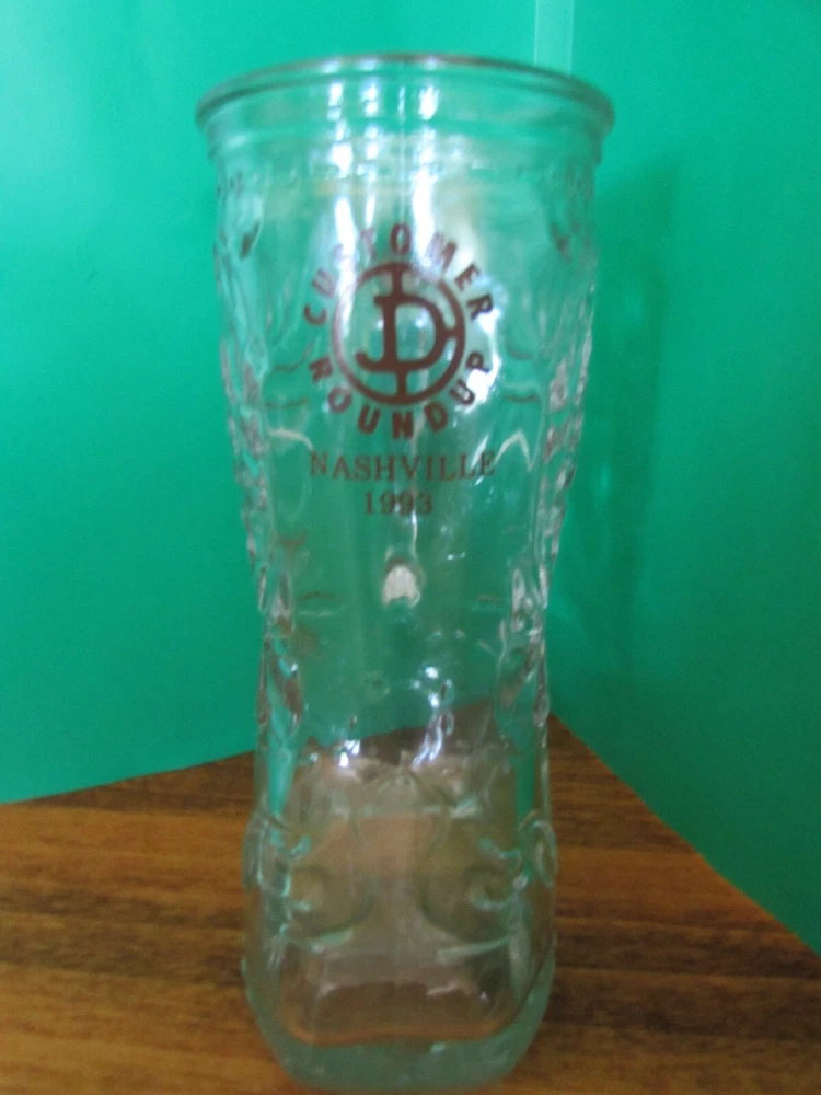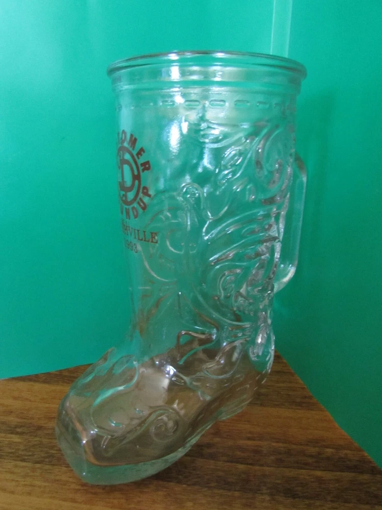 JD Customer Roundup Nashville 1993 cowboy boot heavy beer drinking glass with handle . Stands about 6" tall and about 2 3/4" across top. Very solid piece . Descriptions are to the best of my ability. However, I am not a collector so may not know the best way to describe the item. Please feel free to E-mail me with questions or for more pictures and check out my other auction items . Please view all pictures, any damage will be pictured.