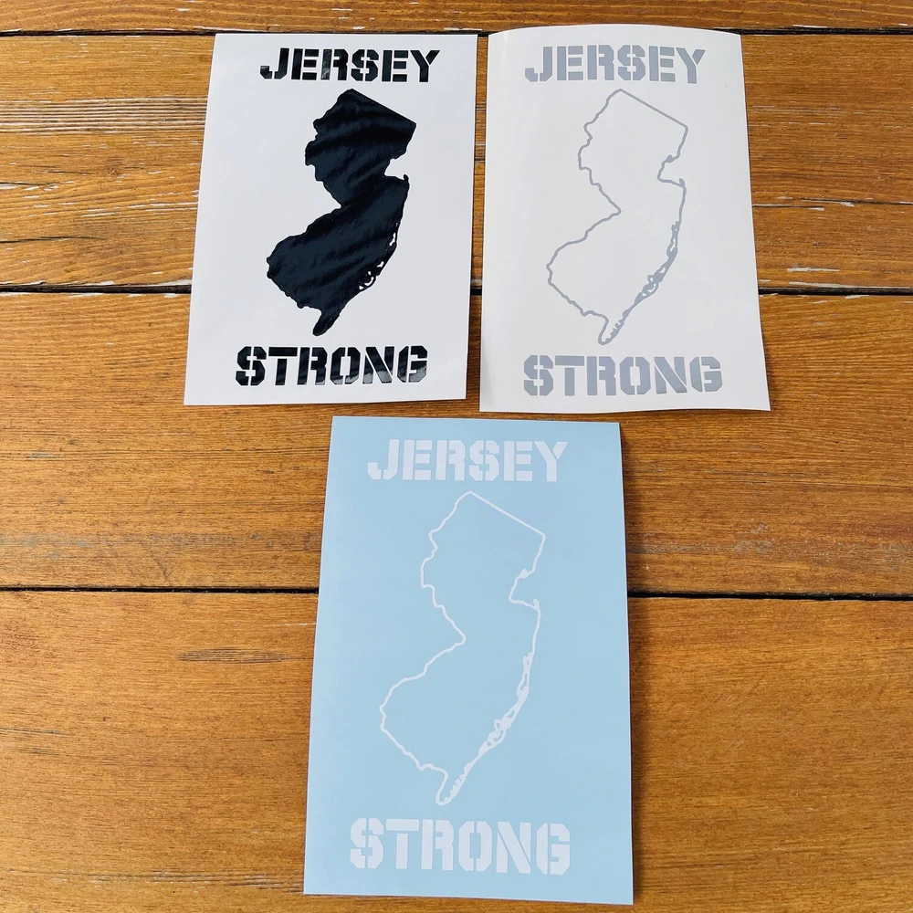 ONE JERSEY STRONG vinyl decal available in a bunch of different colors and various sizes. Make your size and color selections using the drop down menus. Many, MANY other colors available on request. Don't be shy. :-) The decals are computer cut, transfer tape is applied and detailed application instructions are included. FREE shipping. Colors shown in the last photo from left to right are etched glass(semi-translucent), soft pink, lilac, hot pink, light blue, dark blue, mirror chrome, mirror gold. The "Mopar Hemi" decal shows what etched glass looks like on a window. BUY 2 & AUTOMATICALLY GET A 3rd of the same size and color FREE! FAQ: *****My vinyl decals are exterior grade and last! Application surface must be CLEAN, SMOOTH & NON-POROUS. *****Like the design, but not the color choices? Just ask! I stock a MASSIVE amount of vinyl in hundreds of different colors. *****Have a critical dimension and need an exact size? No problem! Just ask! *****Want it bigger, such as a windshield banner? Just ask! I do custom work & custom listings ALL the time for folks. ***** Want this design (or any other) on a shirt, coffee mug, tumbler or sign? Just ask! *****Smaller decals ship in a rigid cardboard envelope for protection and larger decals are sandwiched in cardboard and shipped in bubble mailers. ***** I do not control the USPS. Once I make, package, label and ship your item, I have no more control over it than I do the weather. That not only goes for when it's delivered, but also how it's treated while in the USPS system. I mark all decal packaging "DECALS. Pls. Do Not Bend/Fold/Cram". *****If for any reason you have a problem with our transaction, please contact me before leaving feedback and I will do my very best to make it right.