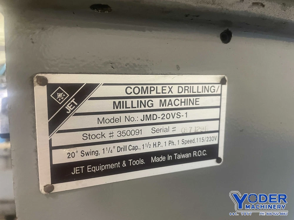 1500 HOLLOWAY ROAD HOLLAND, OHIO 43528 BUYERS AND SELLERS OF USED INDUSTRIAL MACHINERY JET MODEL JMD-20VS-1 MILL/DRILL: STOCK #76922 SERIAL 187/296 MODEL JMD20VS-1 STOCK 350091