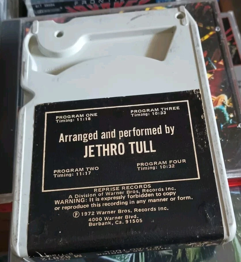 This vintage 8-track tape of Jethro Tull's "Thick as a Brick" is a rare find for any rock 'n' roll enthusiast. The cartridge is made of high-quality magnetic tape, and the fidelity level is very good, making the listening experience pleasant and immersive. The case is made of durable plastic, and the color is a classic gray. The inlay and cover conditions are very good plus, adding to the overall value of this piece. The catalogue number is 82072, and the release year is 1972. This 8-track tape is a must-have for any collector or fan of classic rock.