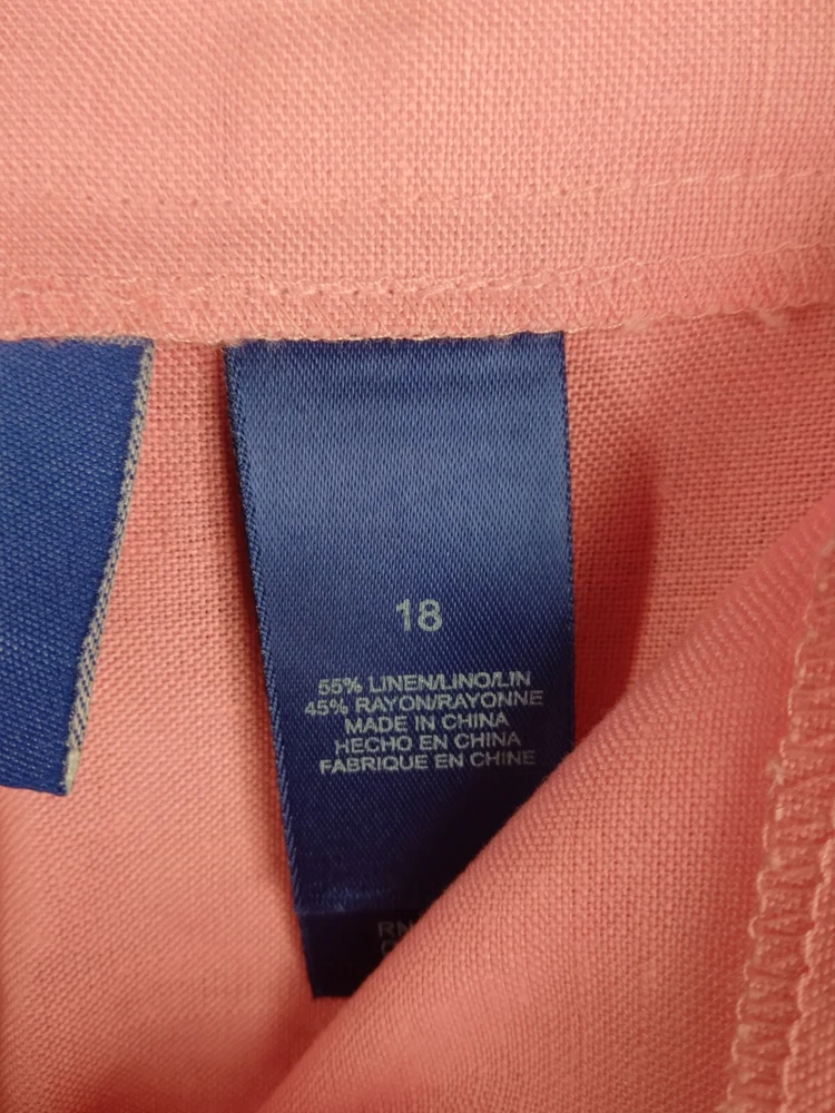 For Sale: A pair of pre-owned J.H. Collectibles Linen Blend Cropped Capri Pants Size: Women's 18 Measurements: Refer to photos above. Great pair of pants from an excellent brand! In good gently used condition with no major flaws such as rips, tears, or stains. We ship items daily, so plan to receive your item(s) quickly! We also combine & discount shipping for orders with multiple items. From a smoke-free home. We accept domestic 30-day returns. We provide a variety of measurements on all items. Measurements are approximate and as close to accurate as possible but certain fabrics and styles can have a slight variation. Please be sure to check all measurements on used garments as they have been laundered and might vary from other items in the same style. Please message me with any question you may have, I answer most questions very quickly!