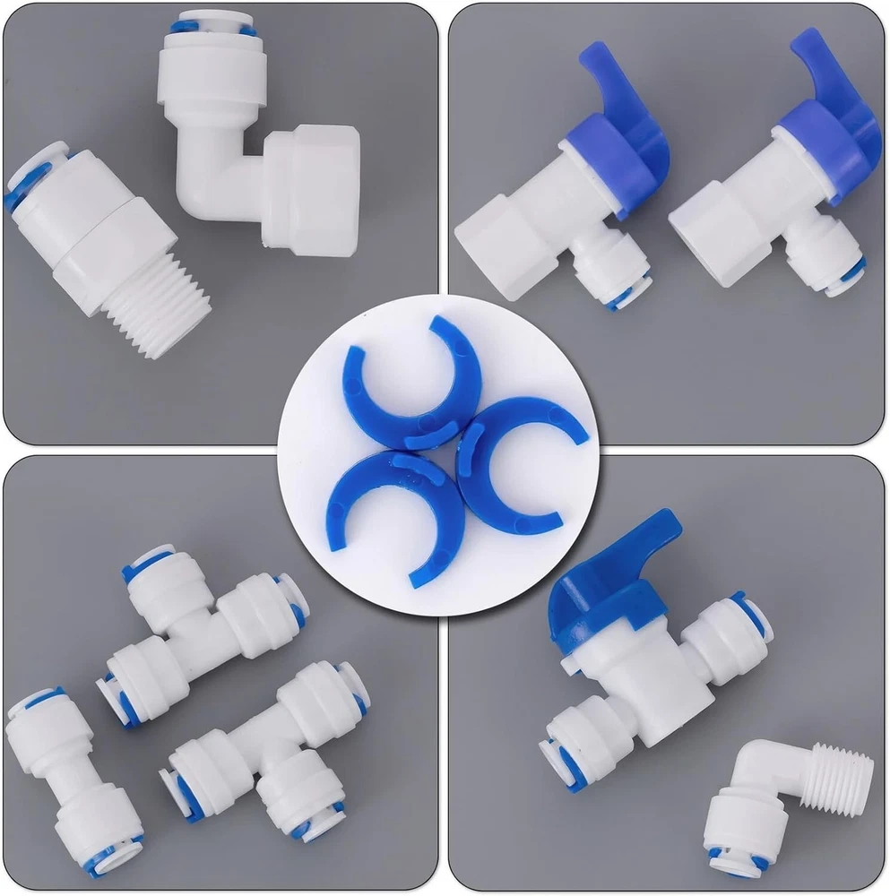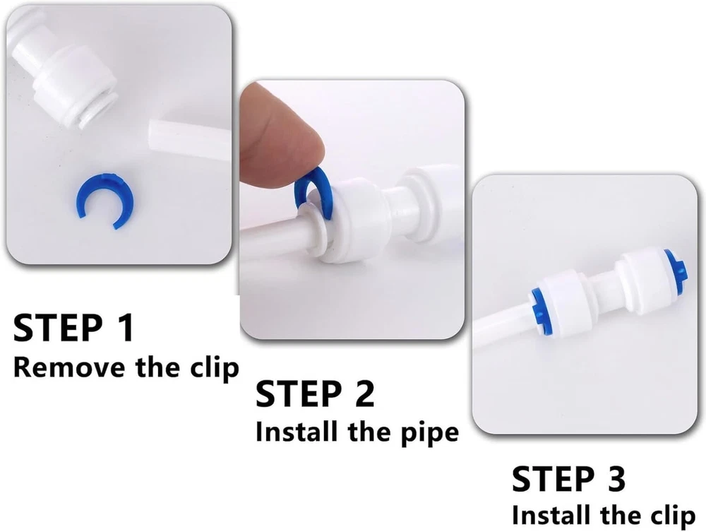 Color: Blue Package Includes -50 pcs Plastic 1/4" Locking clips. Enough quantity for you to use or replace, you can share it with your friends or close neighbors to make life easier Material: We use safe and non-toxic pom material to make the locking clips, which meets the strict requirements for materials in contact with food and drinking water, which makes it widely used in water purification and food/beverage systems Using Experience: This clamp is easy to install and remove, and can be quickly connected and disconnected without the use of other tools. It provides a quick and easy way to prevent leaks. Particularly noteworthy is that these locking clamps can be used on quick push-on connectors, effectively preventing water leaks from accidental loosening of water pipes Installation: Installing the locking clamp is a one-step process; place the clamp opening behind the clevis and press down gently and it snaps into place, securely and safely. Finally, the quick connect clamp is a fixture that ensures that the fittings are securely attached. Overall, these features make quick connect clamps the ideal choice for you Applications: They prevent the sliding hold/release portion of a 1/4 inch pipe connector or valve from inadvertently slipping into and potentially releasing plastic tubing. These locking clamps can be used on reverse osmosis water systems and housing inline filter etcs, and fit standard 1/4" Quick connects used on most reverse osmosis systems
