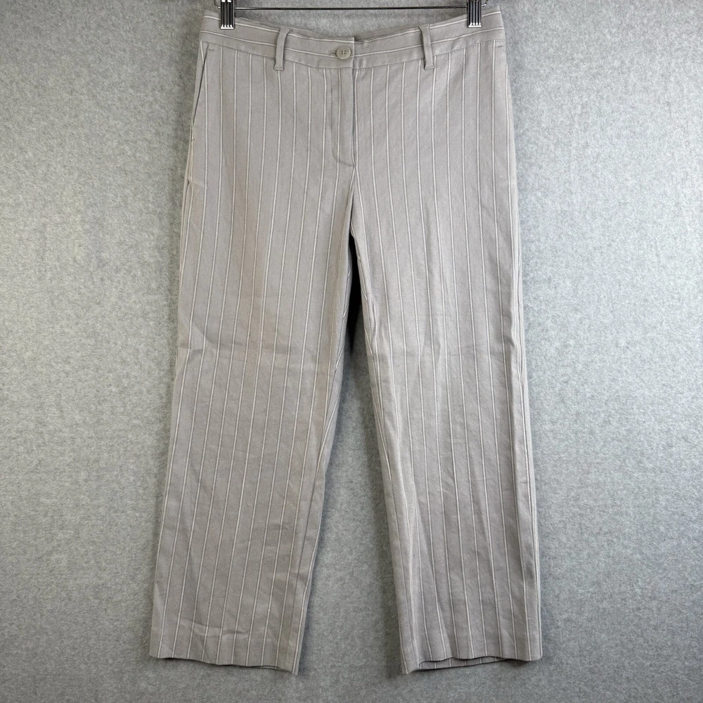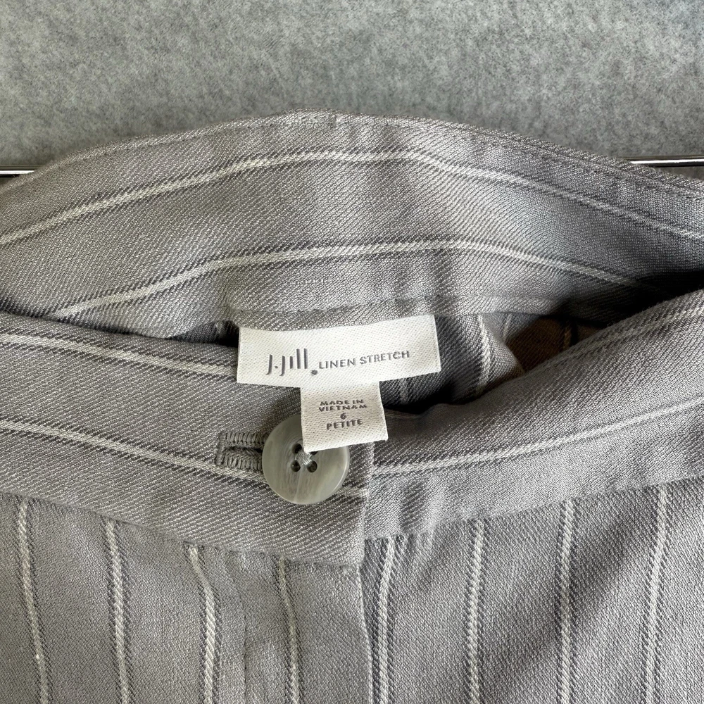 J.Jill Gray Minimalist Career Linen Stretch Crop Pinstripe Pants Size 6 Petite. Made out of linen, rayon and, spandex. View approximate measurements below. Waist 28"/30" Length 32" Inseam 23" SKU F15