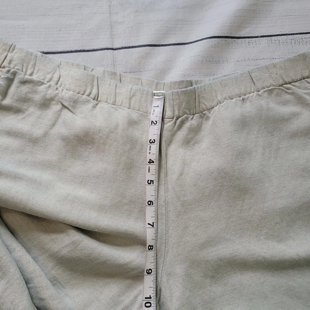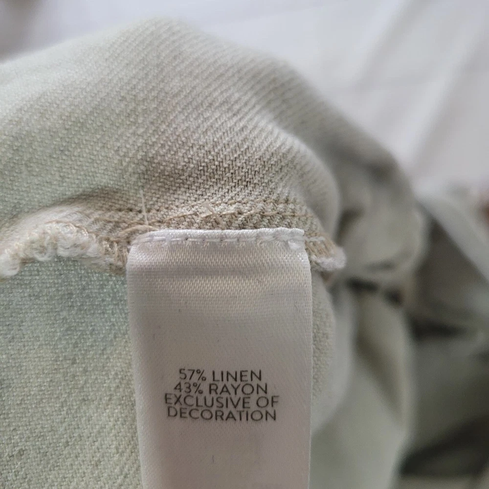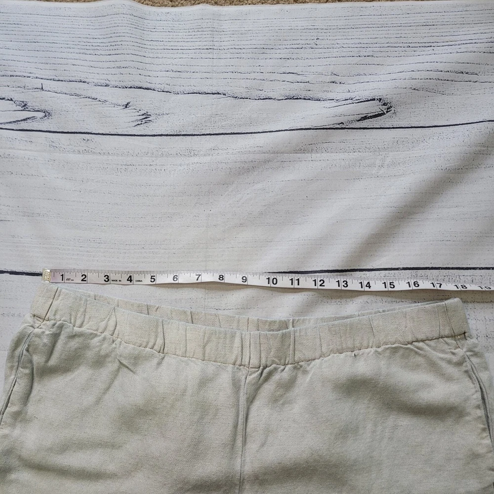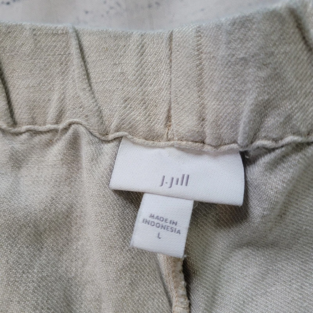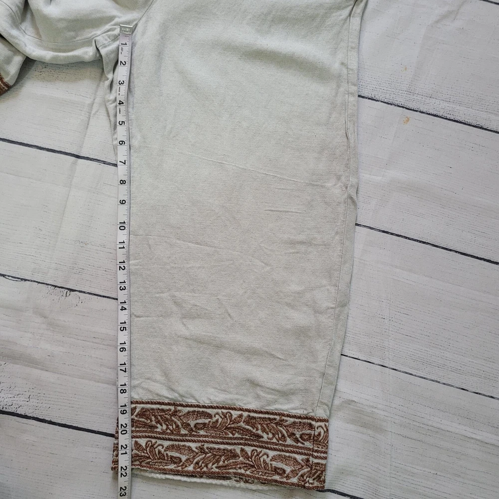 J.Jill Size L Linen Blend Embroidered Hem Wide Leg Pants Pull On Off White Brown Off-white / cream color pull on casual pants from J.Jill Decorative brown leaf embroidery detail on ankle hems Elastic Waist Pockets Wide Leg Cropped -Materials: 57% Linen, 43% Rayon -Excellent, pre-owned condition. No visible stains, flaws or tears. No to minimal signs of previous wear. Measurements included in photos - please inquire if more are needed. All offers considered - make one today! Approximate Measurements: Waist: 32" Rise: 10" Inseam: 22"