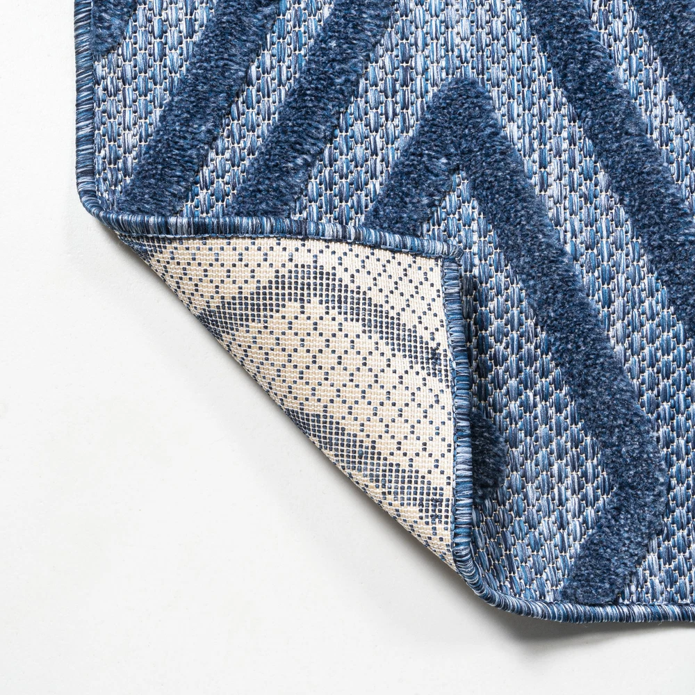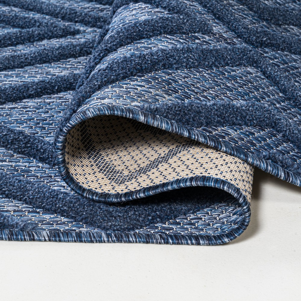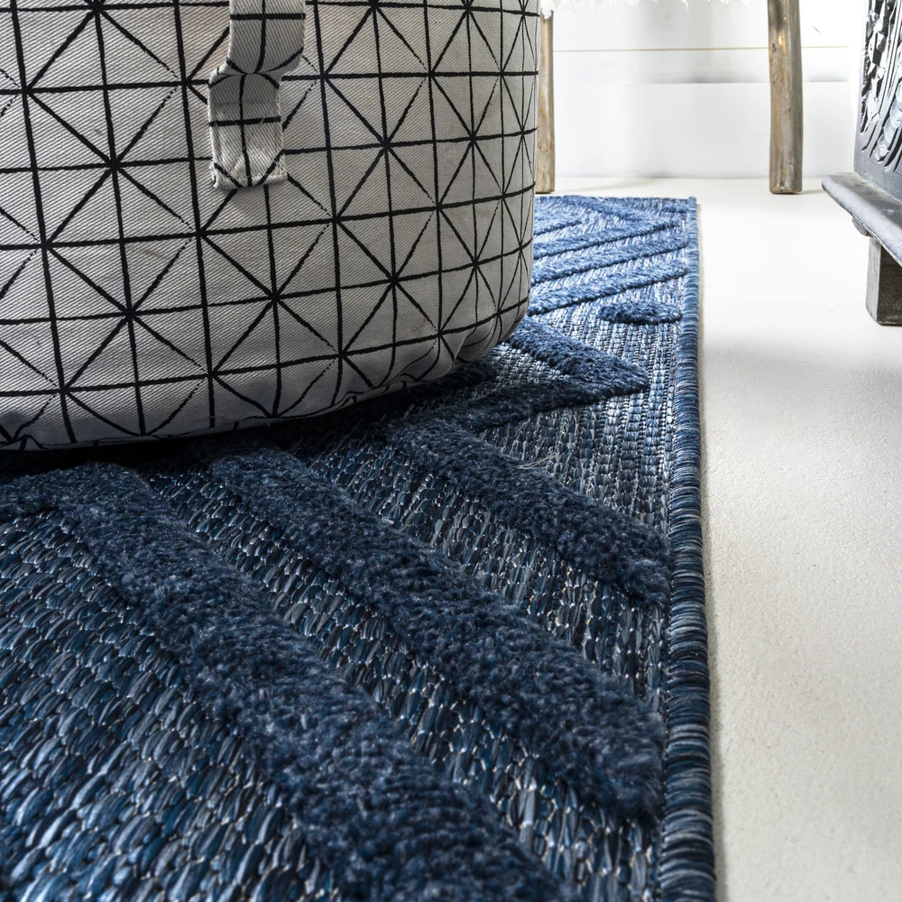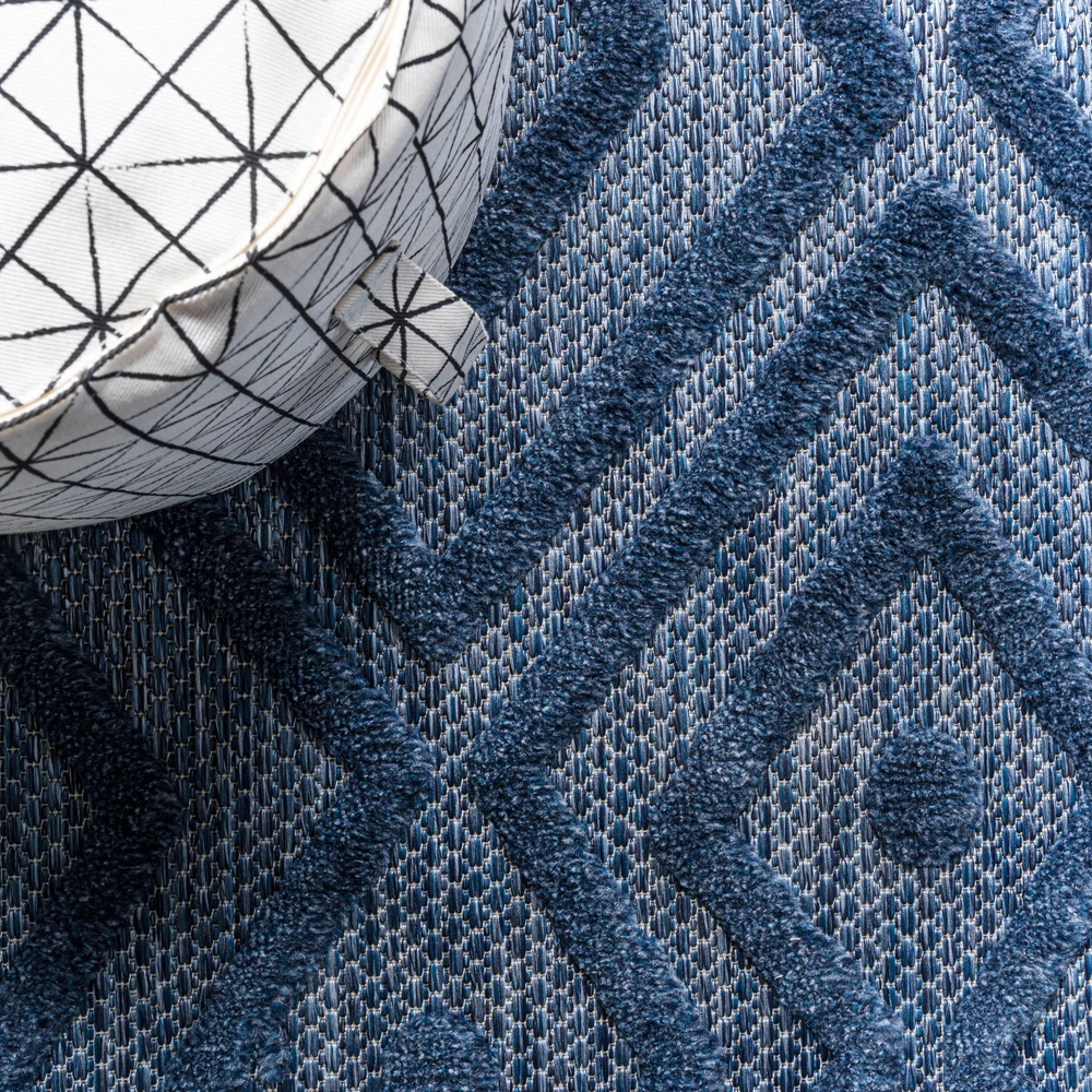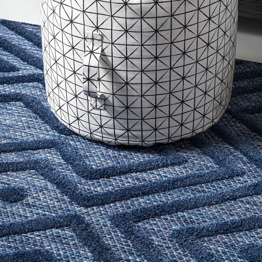This rug is a game-changer! The bold blue geometric design instantly elevates any space—indoors or outdoors. It's super durable, easy to clean, and handles pets/kids like a champ. The textured, vintage look adds cozy charm without sacrificing modern style. Perfect for high-traffic areas, and the polypropylene material makes it weather-resistant. So stylish yet practical—absolutely love it!