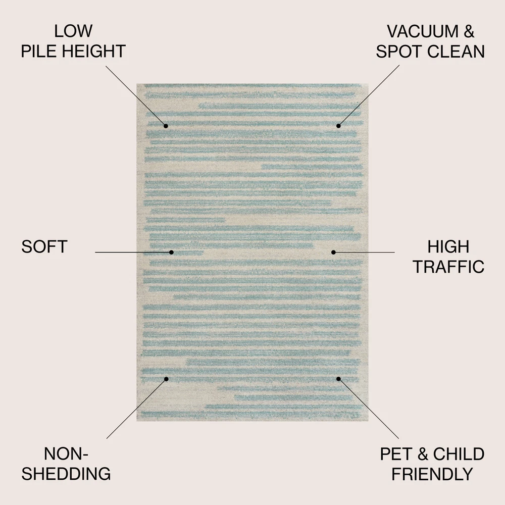 This rug is absolutely stunning! The vibrant turquoise stripes pop against the cream background, adding a stylish Moroccan touch to any room. The polypropylene material is soft yet durable, making it perfect for high-traffic areas. Easy to clean and maintain, it’s a great choice for busy households. The design feels high-end without the hefty price tag. Love how it instantly brightens up my space!