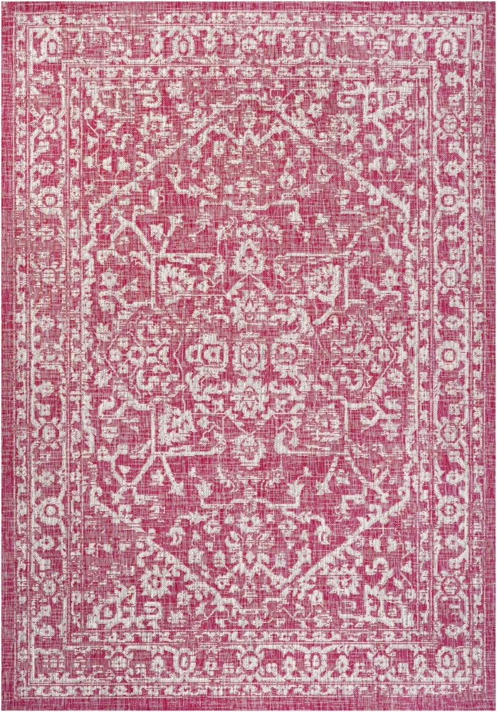 Absolutely love this vibrant rug! The bold fuchsia and light gray colors bring a fun, eclectic pop to my patio—totally transforms the space. The polypropylene material feels durable and water-resistant, perfect for both indoor and outdoor use. Easy to clean and lays flat without curling. The vintage-inspired medallion pattern adds a bohemian touch without looking too busy. So happy with this purchase—great quality for the price!