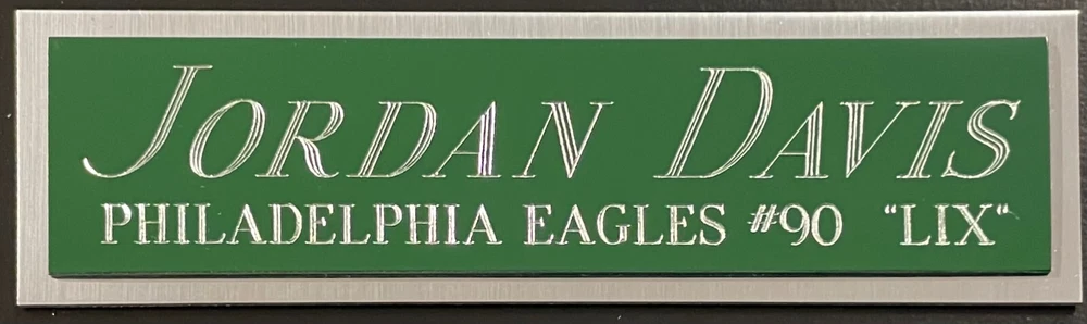 AUCTION IS FOR NAMEPLATE ONLY! PROFESSIONALLY ENGRAVED SINCE 1990 THE ALUMINUM PLATE IN TEAM COLORS MEASURES 1.25 X 4.25 COMES WITH GOLD LINE DOUBLE SIDED TAPE ALREADY APPLIED-JUST PEEL AND STICK. THE PERFECT FINAL TOUCH FOR YOUR SIGNED BASEBALL-BAT-JERSEY-HELMET-PUCK-STICK-MASK-FOOTBALL-BASKETBALL-BOXING GLOVES-SOCCERBALL-WWE-MMA-GOLF FLAG CASES AND PHOTO DISPLAYS. TOGETHER WE CAN MAKE YOUR MEMORABILIA LOOK LIKE MUSEUM PIECES. ($3.50 USA) ($14 INTERNATIONAL) TOTAL SHIPPING (1-100) TRY "COMBINE SHIPPING" IF THAT DOES NOT WORK I WILL REFUND SHIPPING OVERAGE BUBBLE MAILER WE CARRY MANY PLAYERS THAT ARE NOT LISTED ASK IF YOUR PLAYER IS NOT IN MY EBAY STORE