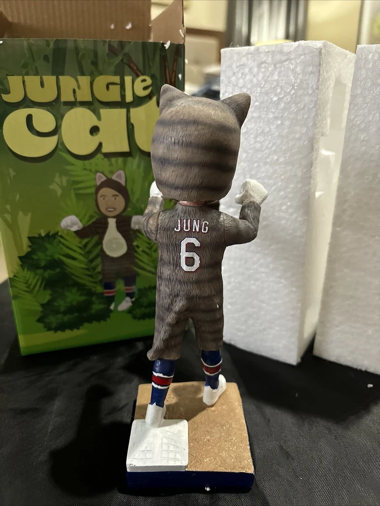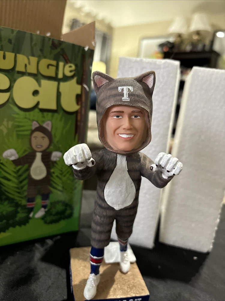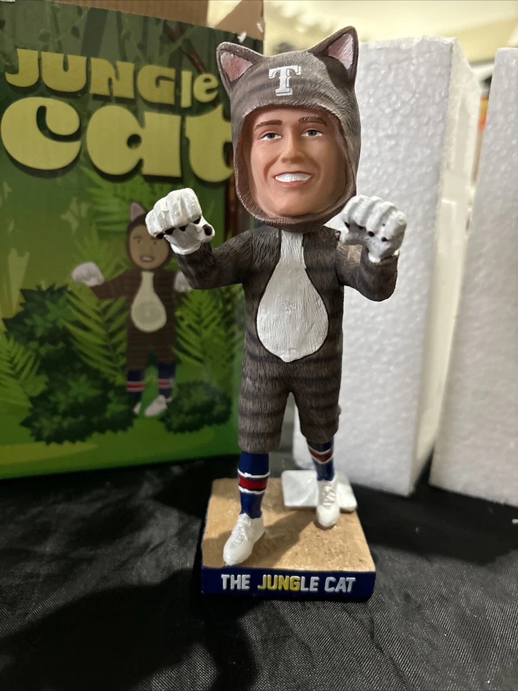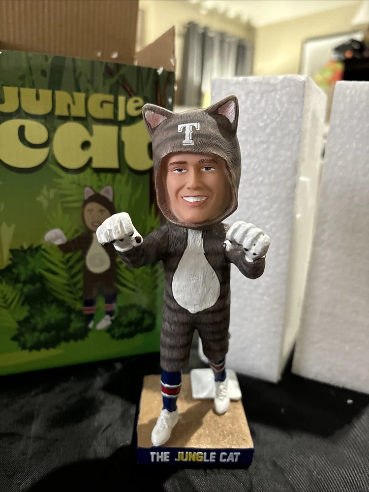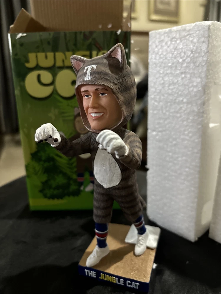 Celebrate your love for the Texas Rangers with this officially licensed Josh Jung "Jungle Cat" bobblehead. This unisex adult collectible is perfect for any Major League Baseball fan. The bobblehead features Josh Jung, a talented player from the Texas Rangers team, in his signature pose. This product is a must-have for any baseball enthusiast who wants to add a unique item to their collection. Show off your team spirit and love for the sport with this one-of-a-kind bobblehead. Get your hands on it now and add it to your Sports Mem, Cards & Fan Shop collection!