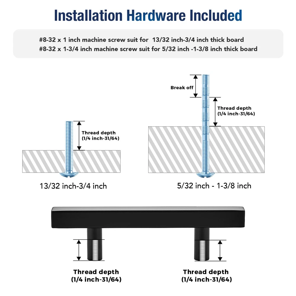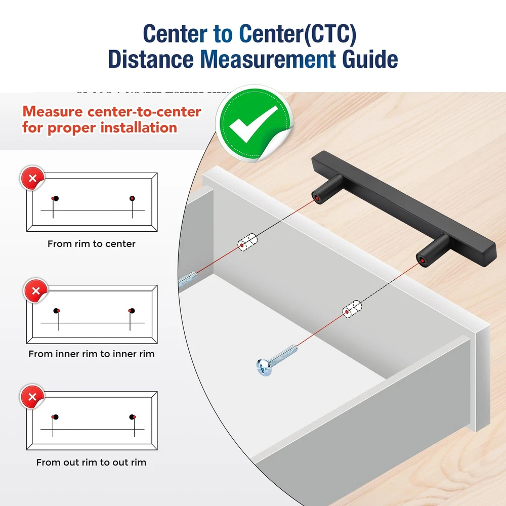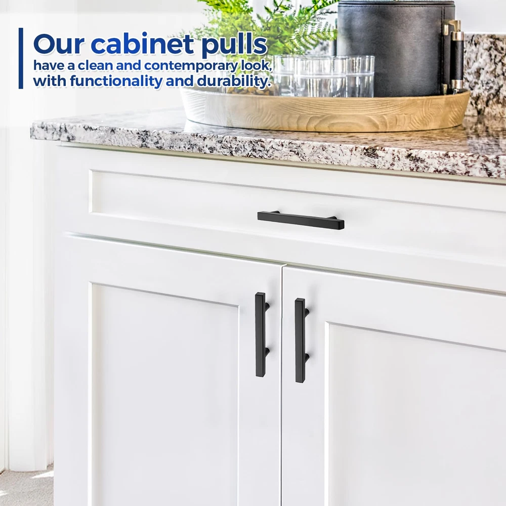 Measurement: Hole Center: 3 inch(76mm), Total Length:5 inch(127mm), Width: 1/2 inch(12mm), Height:1-2/5 inch(35mm) Package Include: There are 30 pack handles in the package . And each handle comes with 2 different size mounting screws(2*1" screws and 2*1.75" screws). The handles are packed individually to protect the handles from scratching during ransportation. Long-lasting: The matte black handles are made of stainless steel material with round foot square shape . The sturdy and robust practicality allows these handles have the long-lasting performance . Widely Application:Our matte black handles can be adapted to any style of decoration, can be used for any furniture such as cabinets, doors, drawers, dressers and so on in kitchen, bathroom, living room, bedroom . 365 Days of Risk-Free Satisfaction: We offer 365 days risk-free after-sales service so that you can order with confidence. JOY DECOR brings you a truly joyful decoration experience.
