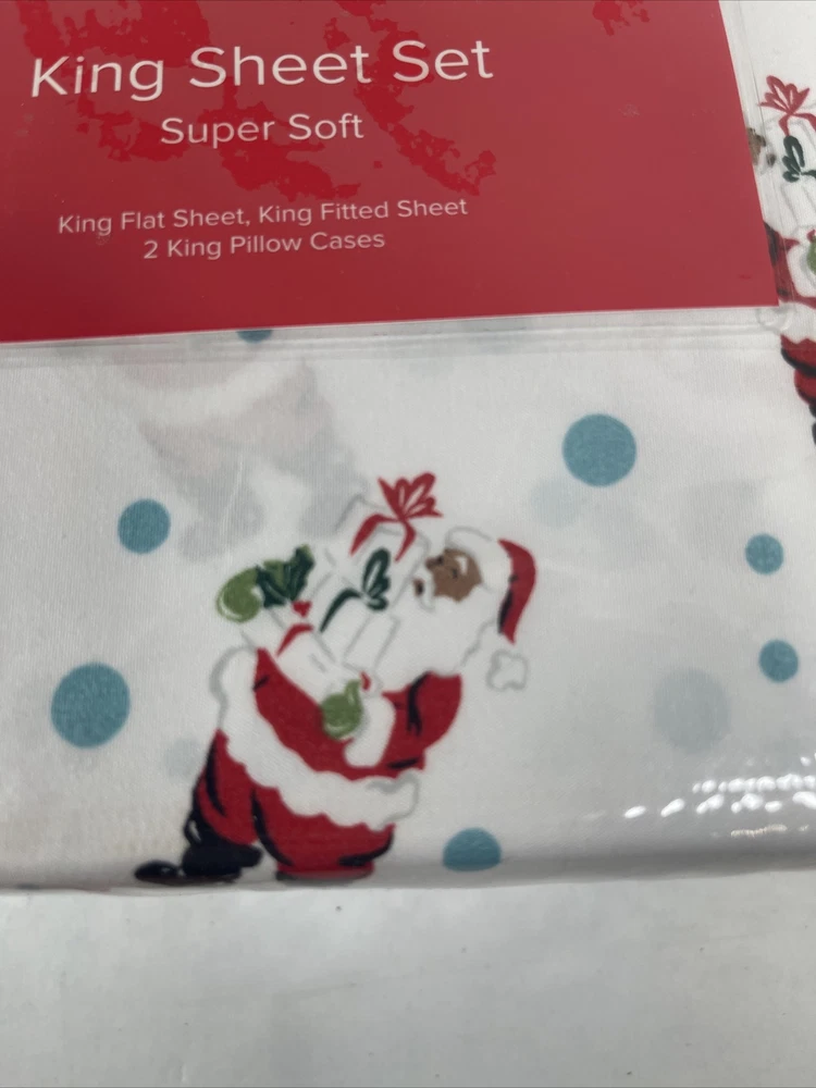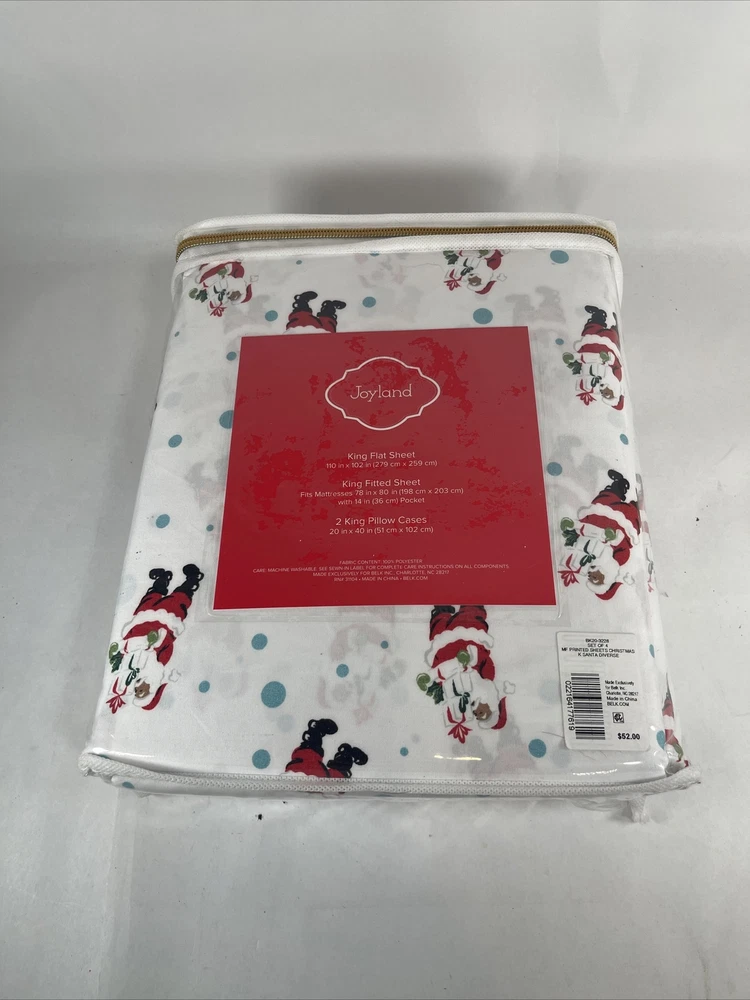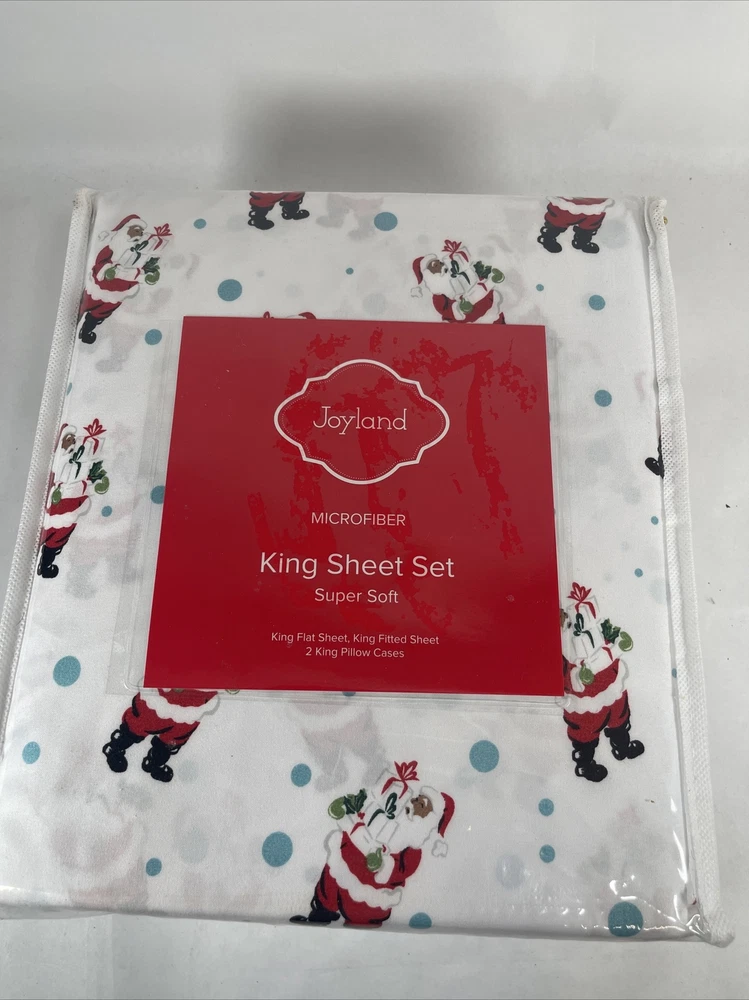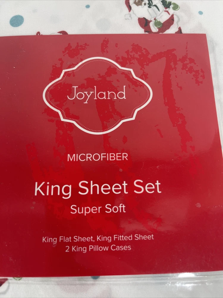 Transform your bedroom into a winter wonderland with this super soft Joyland Microfiber King Sheet Set. The set features a jolly Santa Claus design, making it perfect for the festive season. Made of high-quality microfiber material, this sheet set is durable and comfortable. The set includes a fitted sheet, a flat sheet, and two pillowcases, all designed to fit your king-size bed perfectly. The microfiber material is easy to care for and machine washable. Upgrade your bedding game and get ready to snuggle up in style with this Joyland Microfiber King Sheet Set.