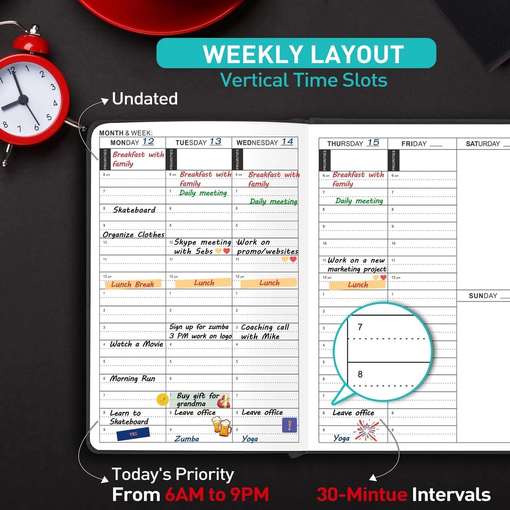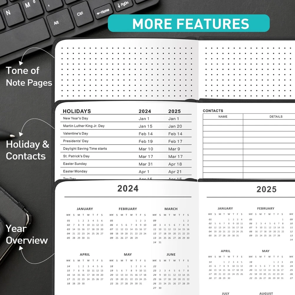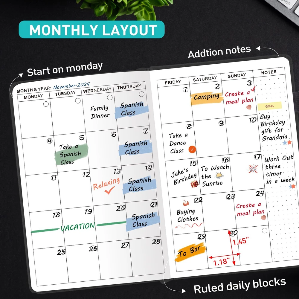 JUBTIC Undated Hourly Weekly Planner, Daily Monthly Appointment Book with 30-Minute Increments, Hardcover To Do List Academic Planner 2025, Start Anytime for Productivity, A5(5.8"x8.5"), Black [Professional Agenda Book] Are you still troubled by procrastination? If you want to stay focused, keep track of your goals, and improve your quality of life, this diary planner and appointment book is perfect for you. The planner includes hourly, weekly and monthly planner. You can use this planner to constantly discover and improve yourself within one year. Stop procrastinating, staying focused, and reaching your goals. [Undated Layouts] The organizer planner unlike most dated planners, The journal is undated, so you can start at any time without wasting a page, The planner lasts for 1 year and each month consists of a monthly calendar, weekly plan (5 sheets). There are plenty of dotted pages in the back that can be customized as you wish. [Weekly View Pages] Every week is spreaded on two pages with a unique layout (starting on Monday and ending on Sunday). Each workday with vertical column has notes section. From 6 am to 9 pm, you can plan your time accurately and you feel relaxed after completing the week's program. [Monthly View Pages] This calendars planner has ample space for daily grids to record reminders such as appointments, birthdays, bill days, etc. There is also a notes section on the right side for you to jot down your notes and prioritize your schedule. This will help you better plan your monthly schedule. [High Quality & Warranty] At JUBTIC, we are dedicated to sustainability and environmental protection. That's why we exclusively use FSC-Certified 100 GSM paper sourced from sustainable and carbon-neutral forests, ensuring that our planners are both eco-friendly and socially responsible. [Professional Agenda Book] Are you still troubled by procrastination? If you want to stay focused, keep track of your goals, and improve your quality of life, this diary planner and appointment book is perfect for you. The planner includes hourly, weekly and monthly planner. You can use this planner to constantly discover and improve yourself within one year. Stop procrastinating, staying focused, and reaching your goals. [Undated Layouts] The organizer planner unlike most dated planners, The journal is undated, so you can start at any time without wasting a page, The planner lasts for 1 year and each month consists of a monthly calendar, weekly plan (5 sheets). There are plenty of dotted pages in the back that can be customized as you wish. [Weekly View Pages] Every week is spreaded on two pages with a unique layout (starting on Monday and ending on Sunday). Each workday with vertical column has notes section. From 6 am to 9 pm, you can plan your time accurately and you feel relaxed after completing the week's program. [Monthly View Pages] This calendars planner has ample space for daily grids to record reminders such as appointments, birthdays, bill days, etc. There is also a notes section on the right side for you to jot down your notes and prioritize your schedule. This will help you better plan your monthly schedule. [High Quality & Warranty] At JUBTIC, we are dedicated to sustainability and environmental protection. That's why we exclusively use FSC-Certified 100 GSM paper sourced from sustainable and carbon-neutral forests, ensuring that our planners are both eco-friendly and socially responsible. Shipping from the USA All of our products are shipped from the USA, ensuring quick delivery to your destination. Payment We offer the following payment methods: PayPal, credit card, bank transfer, and eBay's secure payment system. Free Shipping & Free Returns Shipping within the USA is FREE. Additionally, any return is absolutely free for you. Risk-Free Purchase You have the option to return an item within 30 days without any justification. We cover the return shipping costs! Fast Shipping We ship immediately upon receipt of payment. Generally, the package is delivered within 2-3 days in the USA. If it takes longer, we will contact you. Quality and Costs Made in Europe, USA, China No customs fees or additional charges Total satisfaction guarantee Invoice with declared VAT available upon request in .pdf format Feedback Your feedback is very important to us. After you pay for your purchase, you will automatically receive positive feedback from us.