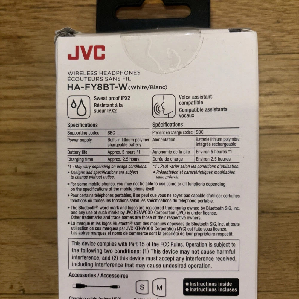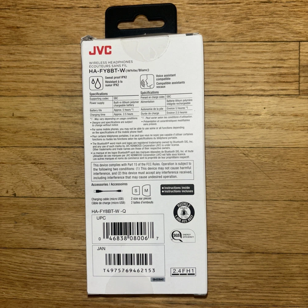 Experience high-quality audio with these JVC Wireless In Ear Bluetooth Headphones. These earbuds are perfect for on-the-go listening, with its compact design and Bluetooth connectivity. The rechargeable battery ensures that you can enjoy your music for hours, while the sweat-proof feature makes it suitable for workouts. The built-in microphone allows you to take calls and stay connected with your busy lifestyle. These earbuds come in a sleek white color, making it a stylish accessory for any outfit.